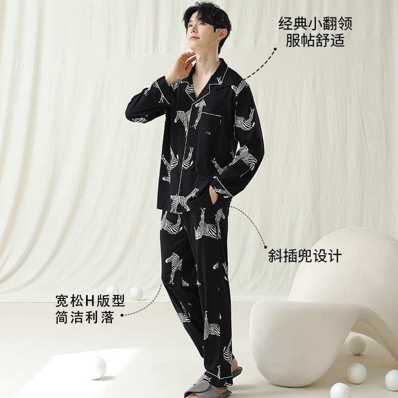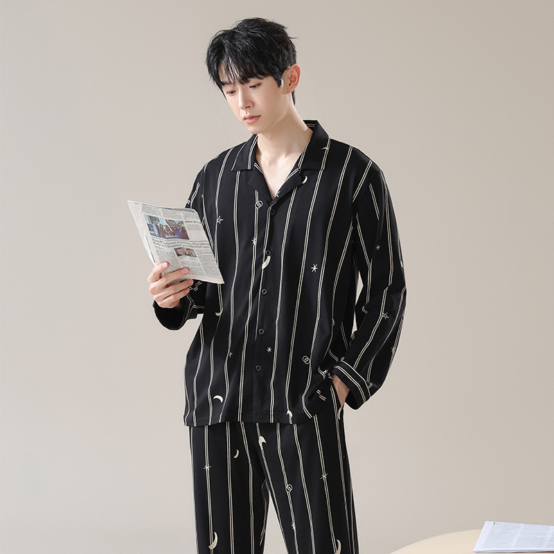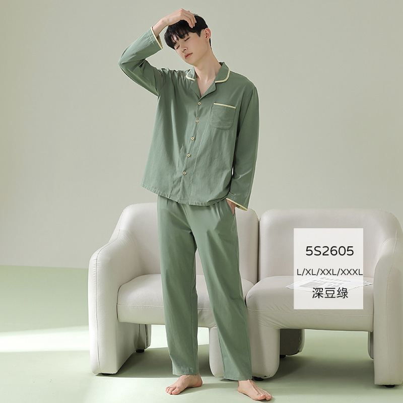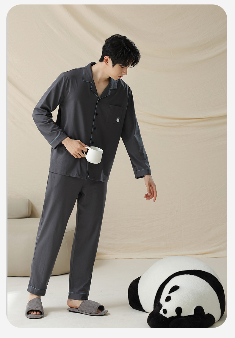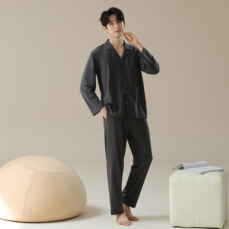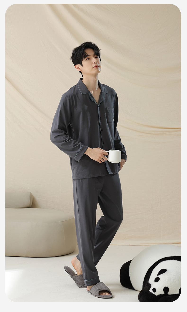 잠옷 남자의 봄과 가을 면 긴 소매 [항균성 신장면] 옷깃 면 남자의 집 옷 가을과 겨울 세트