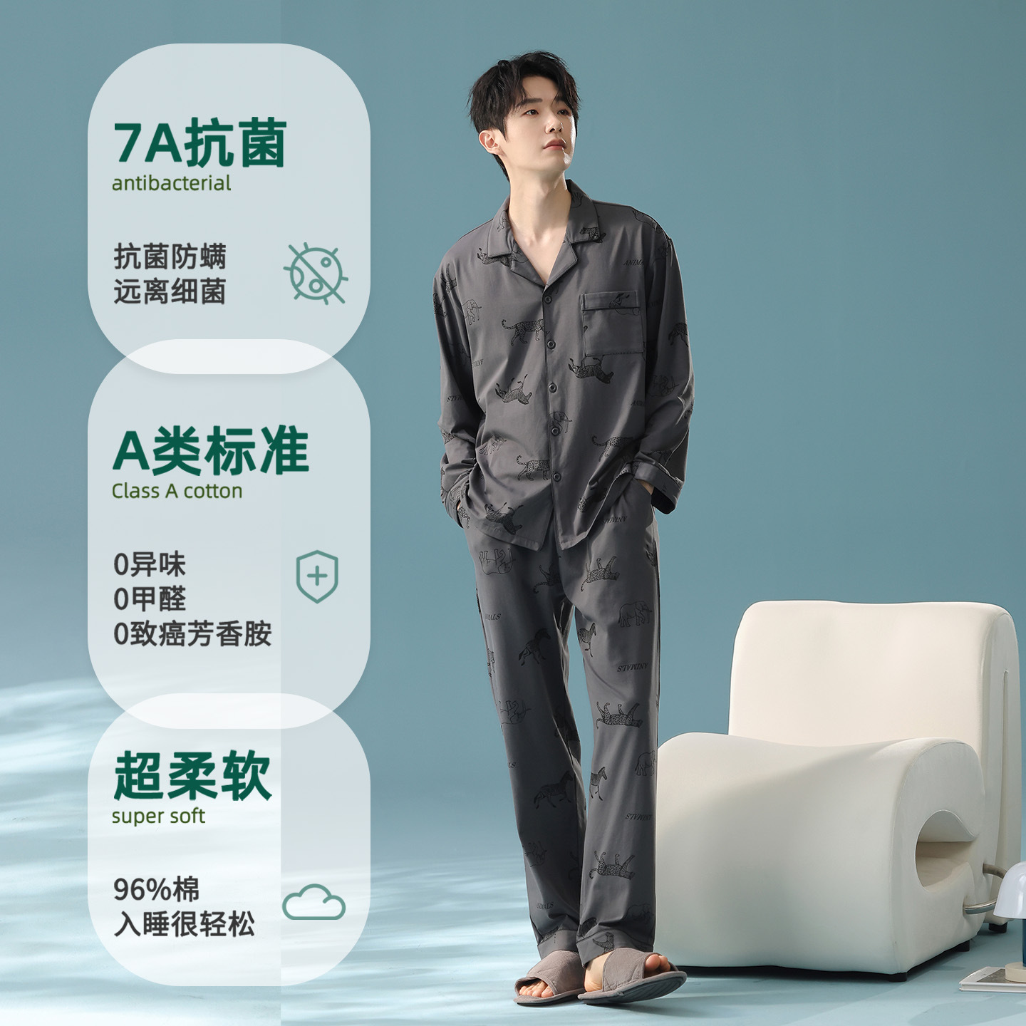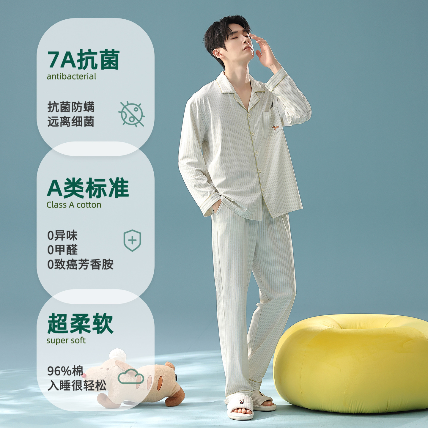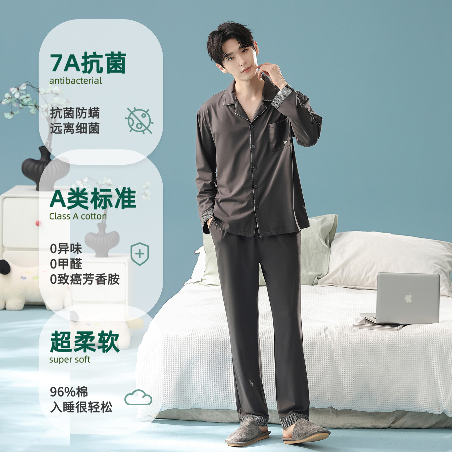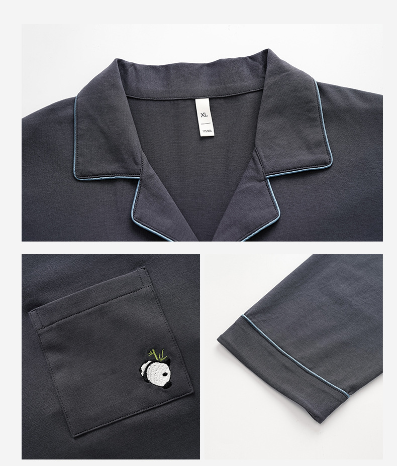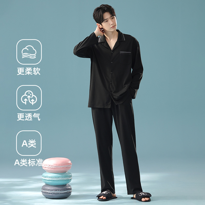 잠옷 남자의 봄과 가을 면 긴 소매 [항균성 신장면] 옷깃 면 남자의 집 옷 가을과 겨울 세트