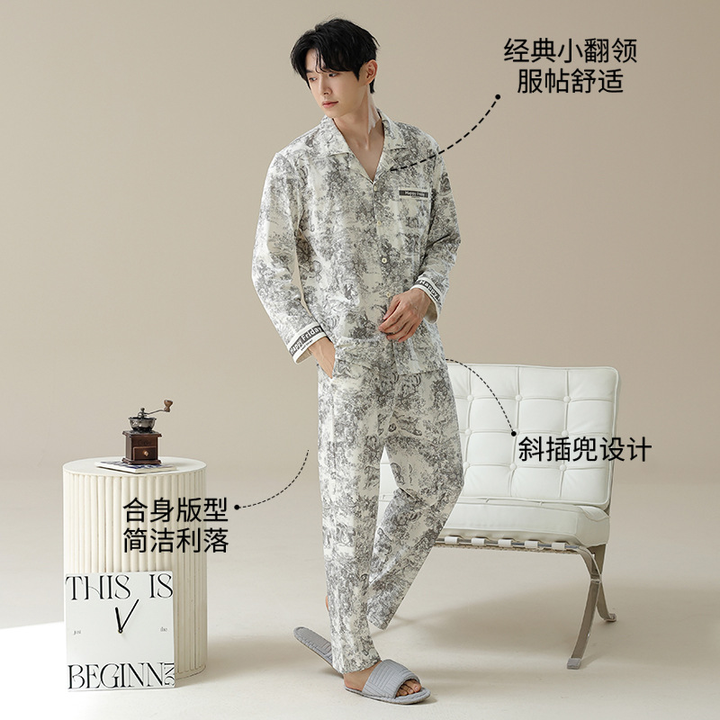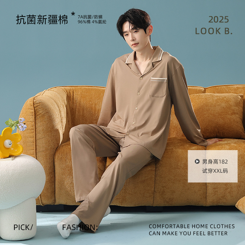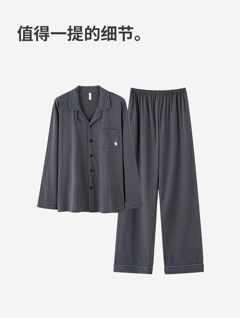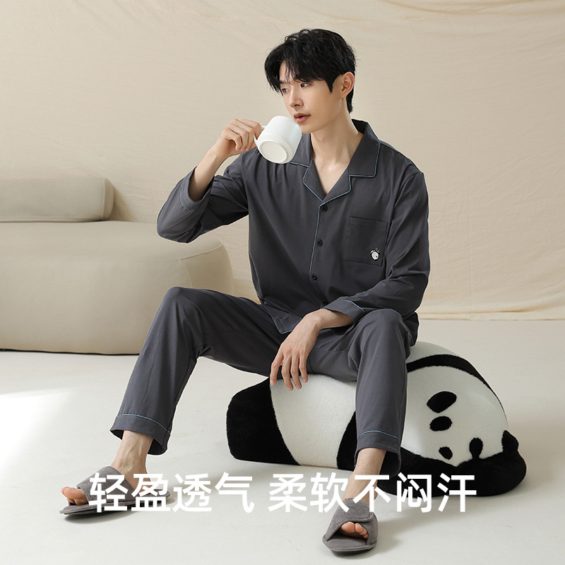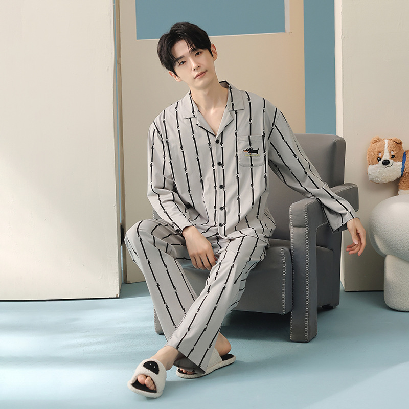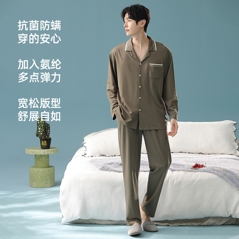 잠옷 남자의 봄과 가을 면 긴 소매 [항균성 신장면] 옷깃 면 남자의 집 옷 가을과 겨울 세트스토어 가기