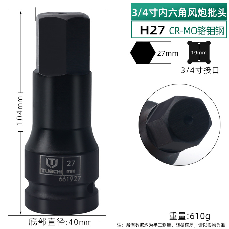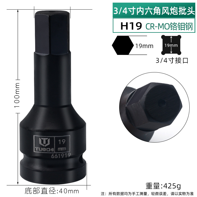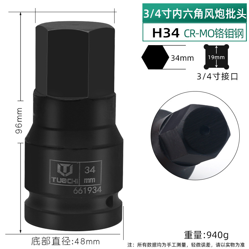 3/4 스크루드라이버 일체형 소켓 육각 에어건 전동 렌치 비트 육각 렌치 일체형 공압식