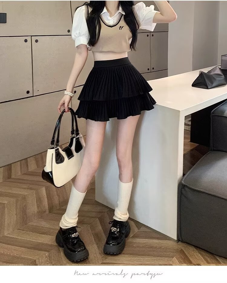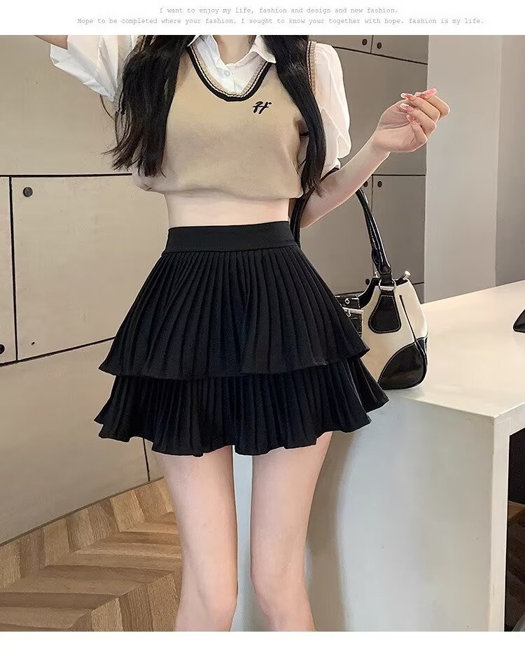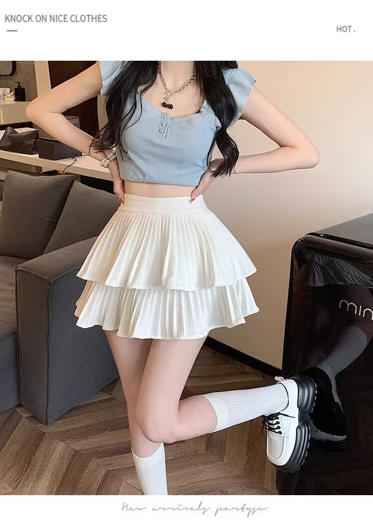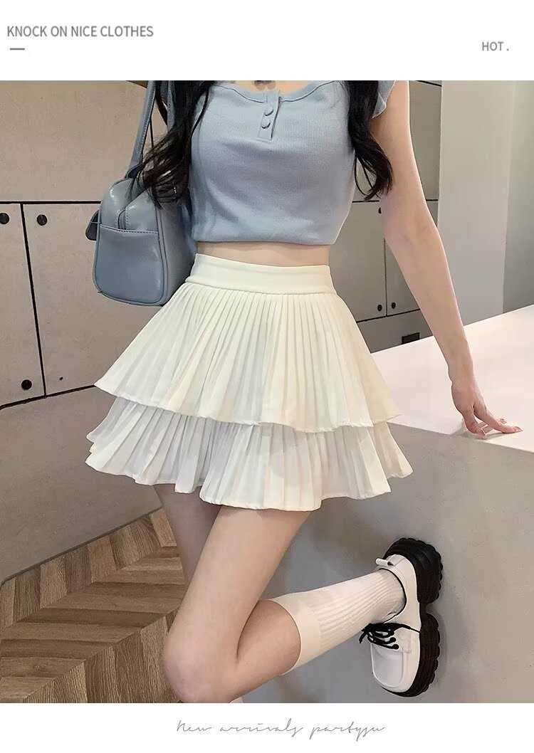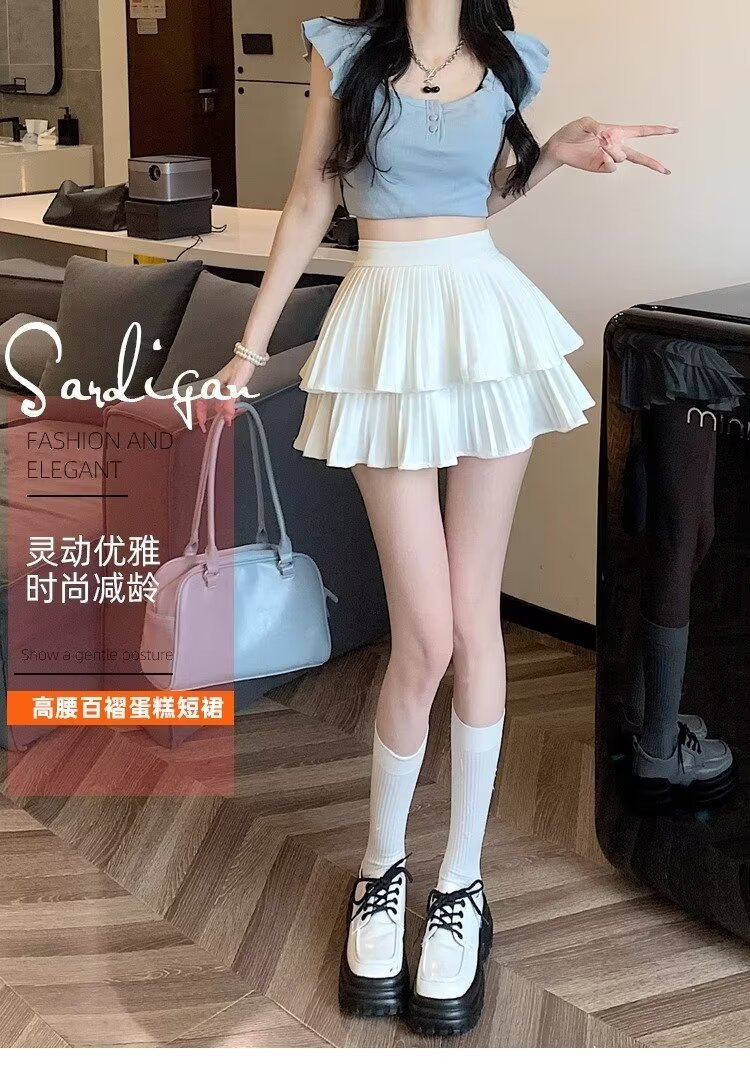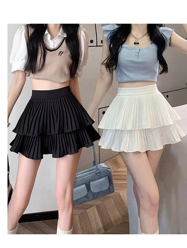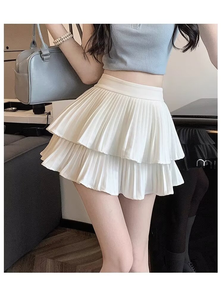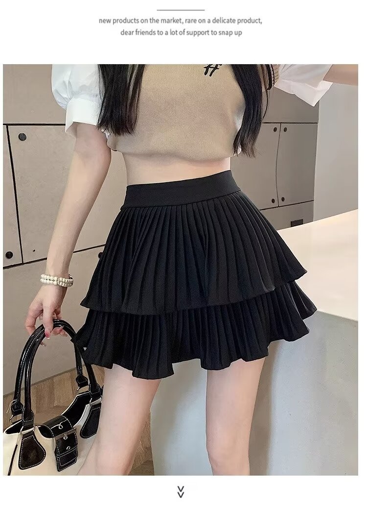 플러스 사이즈 공주 푹신한 케이크 스커트 여성 봄과 여름 탄성 높은 허리 슬리밍 A 라인 주름 짧은 치마 유행스토어 가기