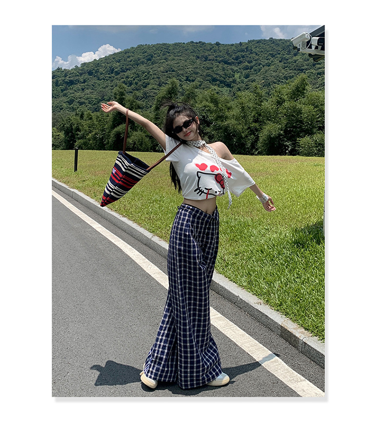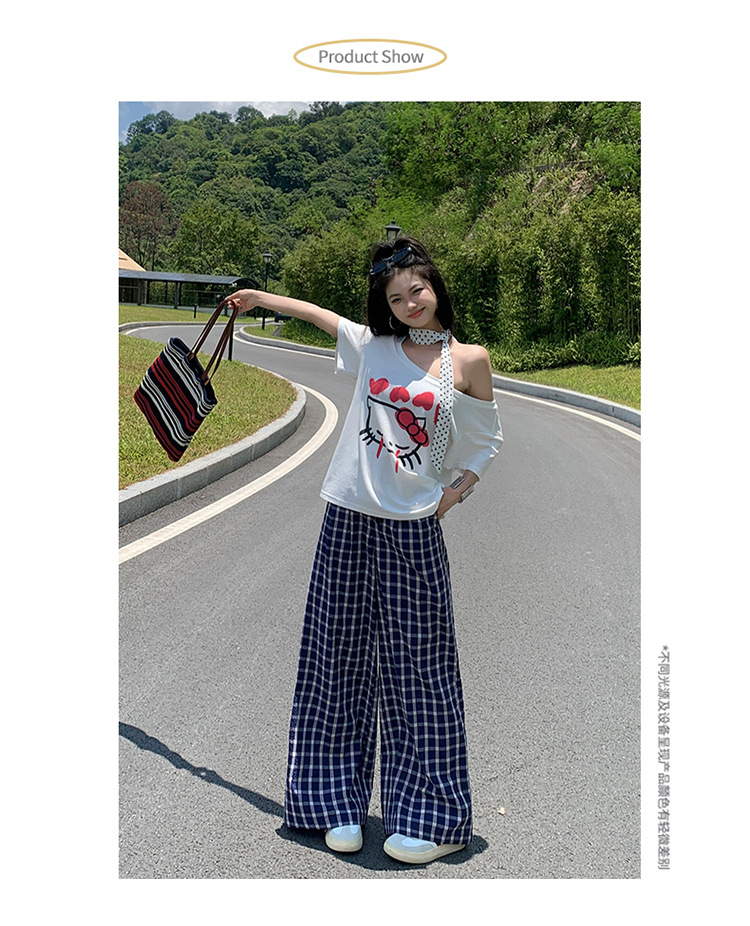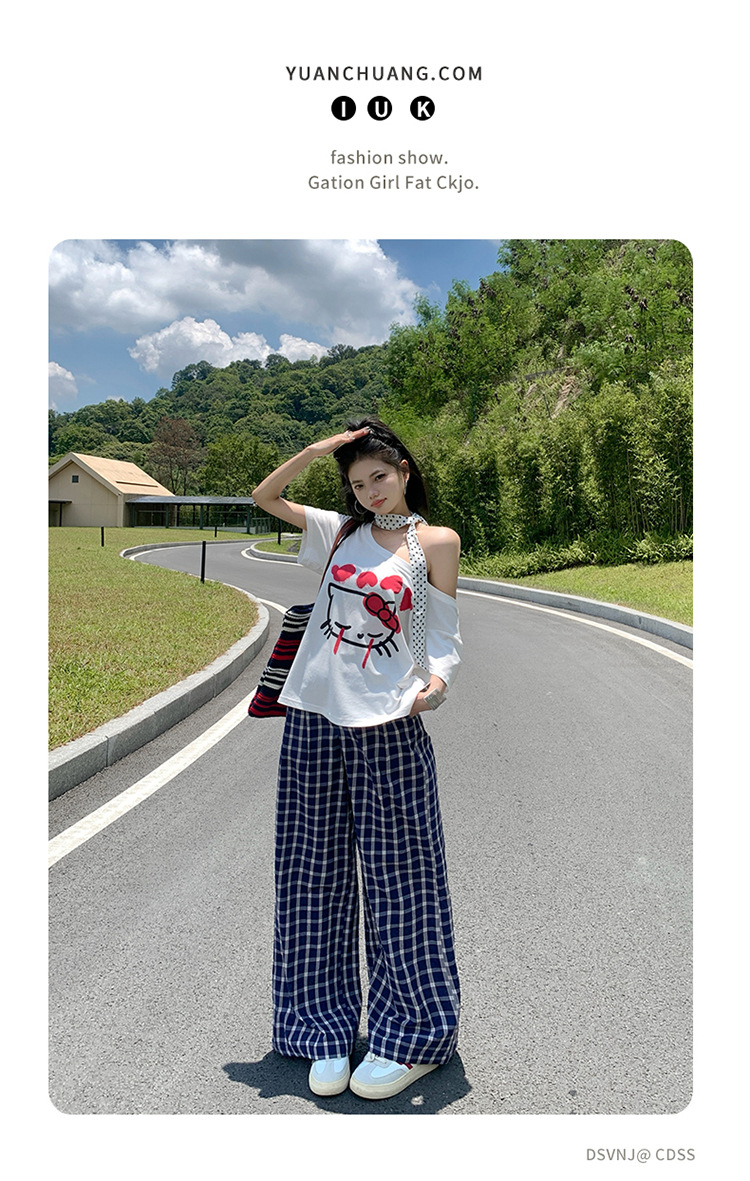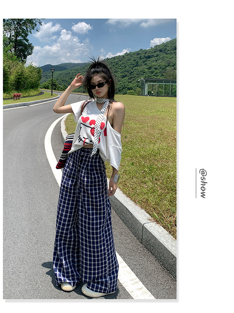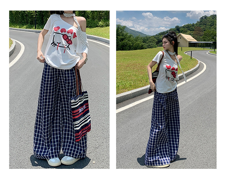 빈티지 아메리칸 스타일 스파이스 소녀 격자 무늬 2024 느슨한 넓은 다리 바지 싱글 행 멀티 버튼 게으른 복용량 직선 여성용 바지스토어 가기