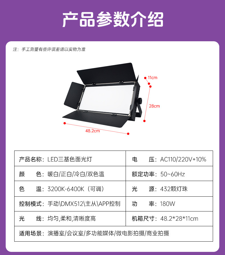 432 led 삼색 표면 빛 빛 빛 채우기 조명 스튜디오 높은 손가락 부드러운 조명 회의실 무대 조명
