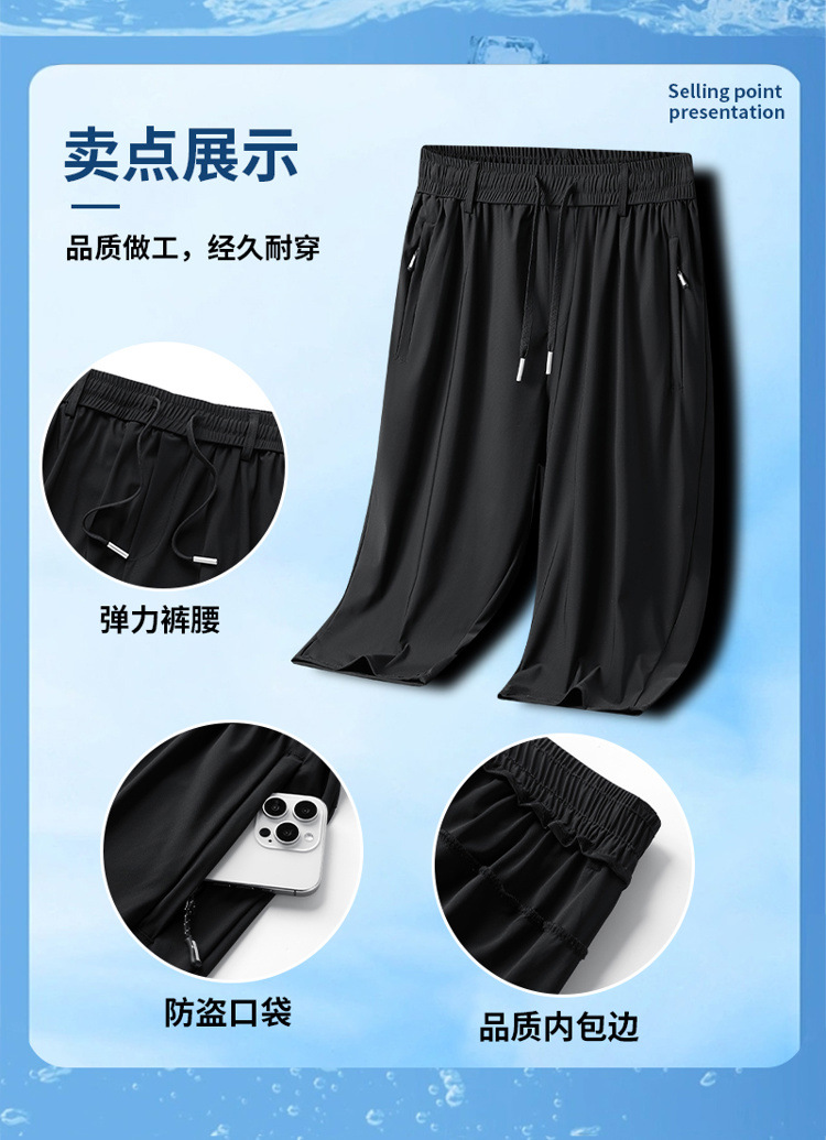 Diyu Shenlong 아이스 실크 반바지 남성용 여름 얇은 캐주얼 바지 빠른 건조 스트레치 남성용 바지 여름 카프리 바지스토어 가기