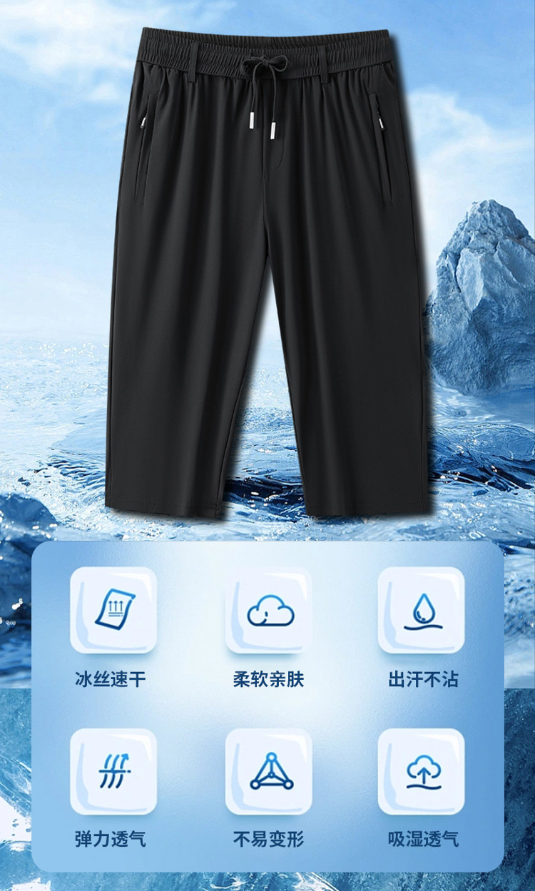 Diyu Shenlong 아이스 실크 반바지 남성용 여름 얇은 캐주얼 바지 빠른 건조 스트레치 남성용 바지 여름 카프리 바지
