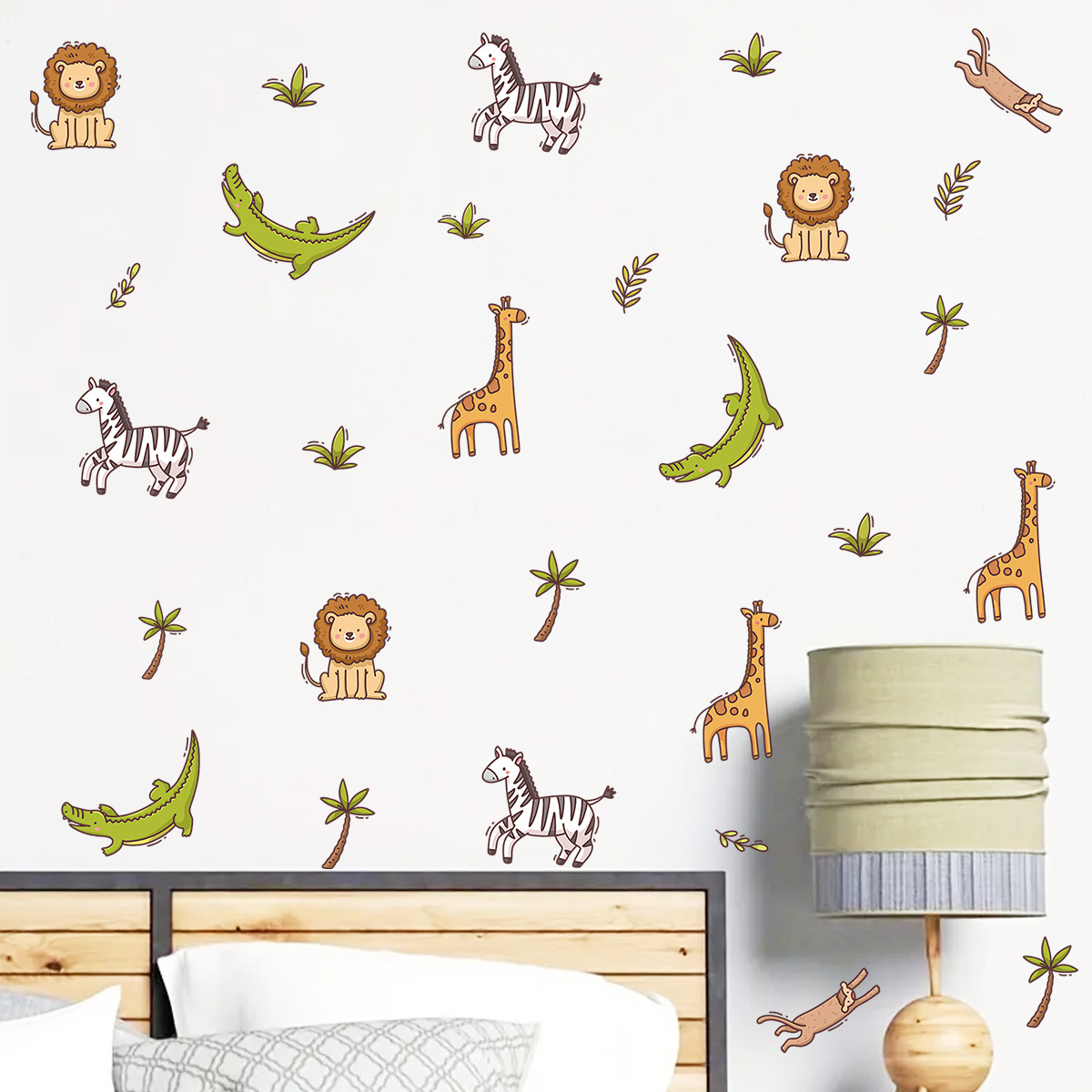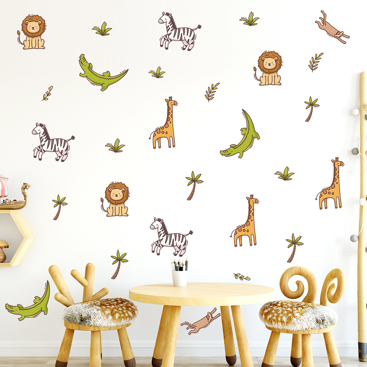 만화 귀여운 아프리카 작은 동물 자기 접착 벽 스티커 어린이 방 배경 벽 장식 작은 스티커 BR0790E