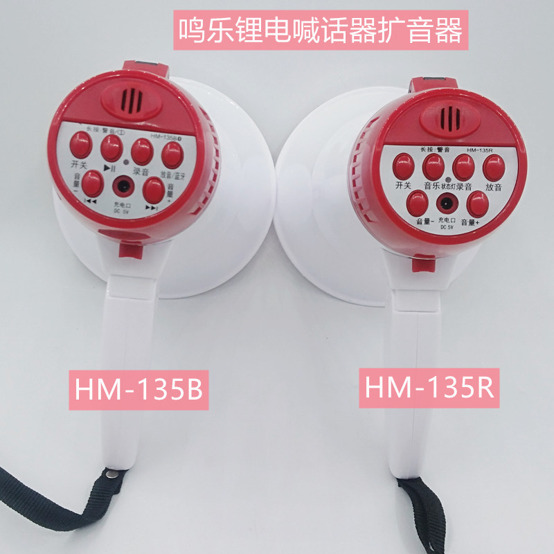 鸣乐喊话器充电锂电喊话器HM-135R   可以录音,可以喊话。HM-135B型号可以录音,可以喊话,可以插U盘,可以蓝牙,每箱30个,欢迎选购!undefined