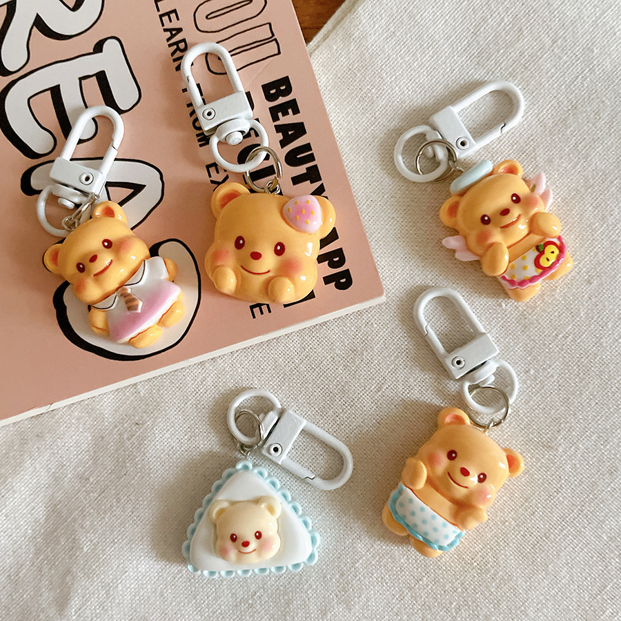 귀여운 만화 버터 곰 원피스 업 시리즈 키 체인 펜던트 스쿨백 교수형 액세서리 학생 여자 친구 선물