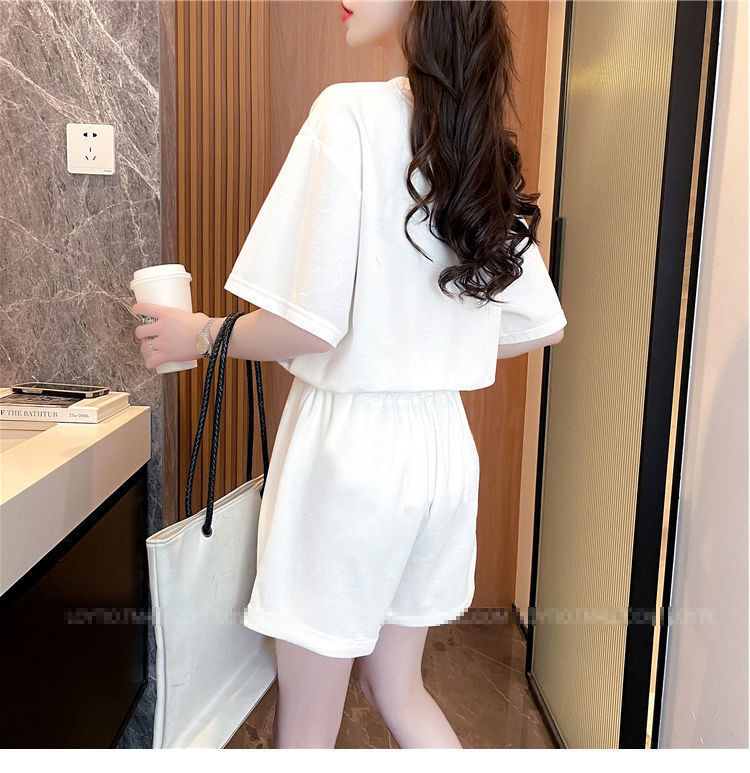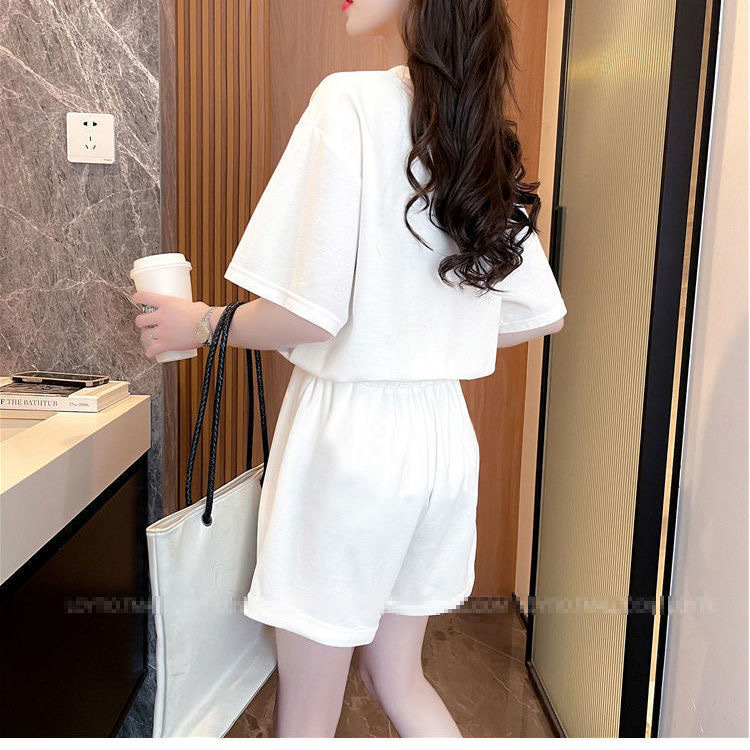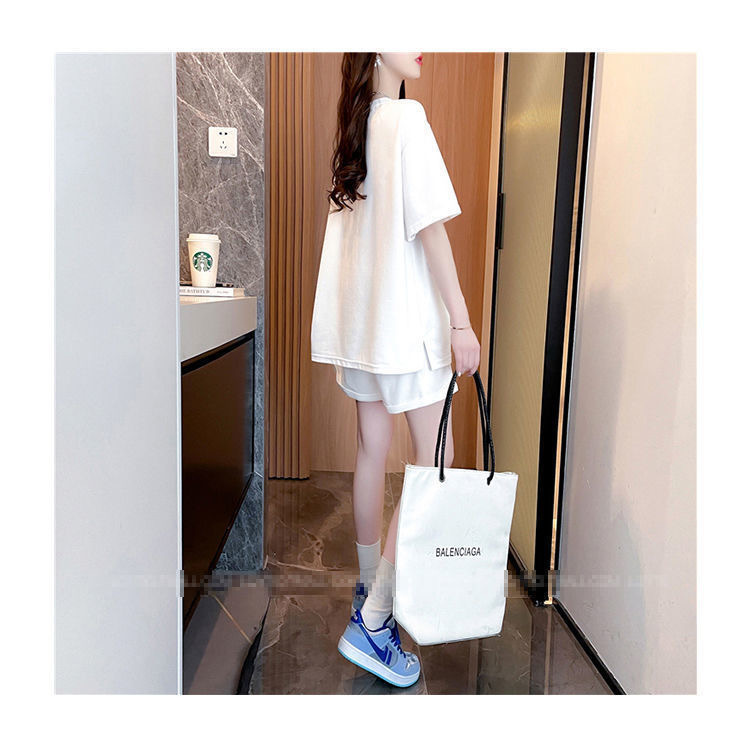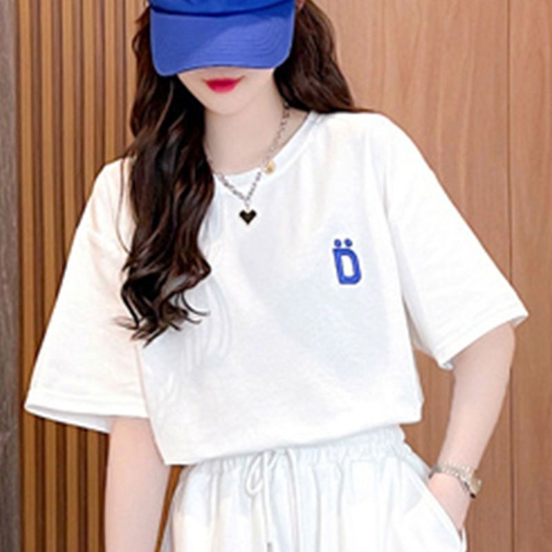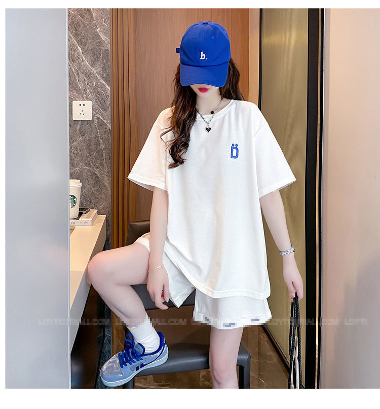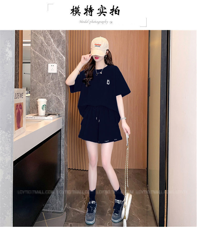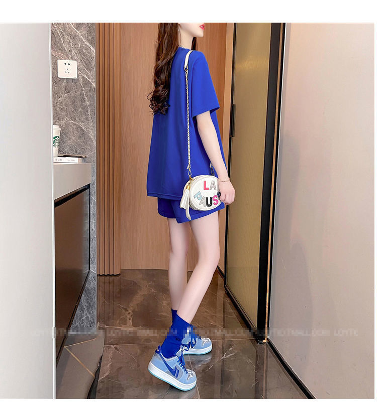 클라인 블루 루즈 플러스 사이즈 캐주얼 반팔 티셔츠 반바지 여름 스포츠 게으른 스타일 탑 반바지 세트 여성스토어 가기