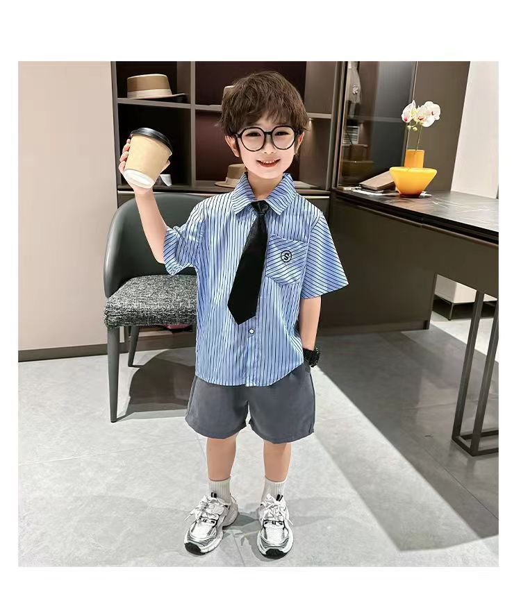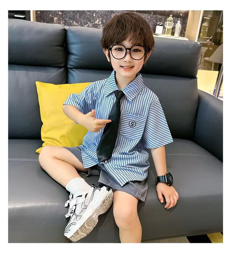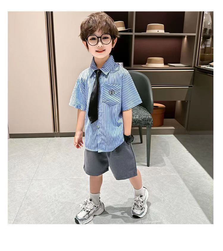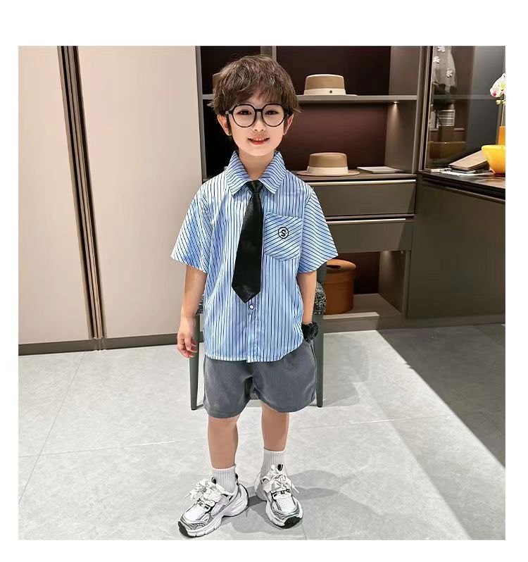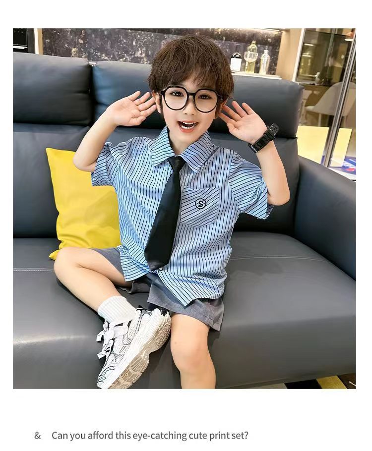 남자들의 여름 2024 새로운 세트 어린이 잘 생긴 유행 여자 대학 스타일 셔츠 반바지 투피스 세트