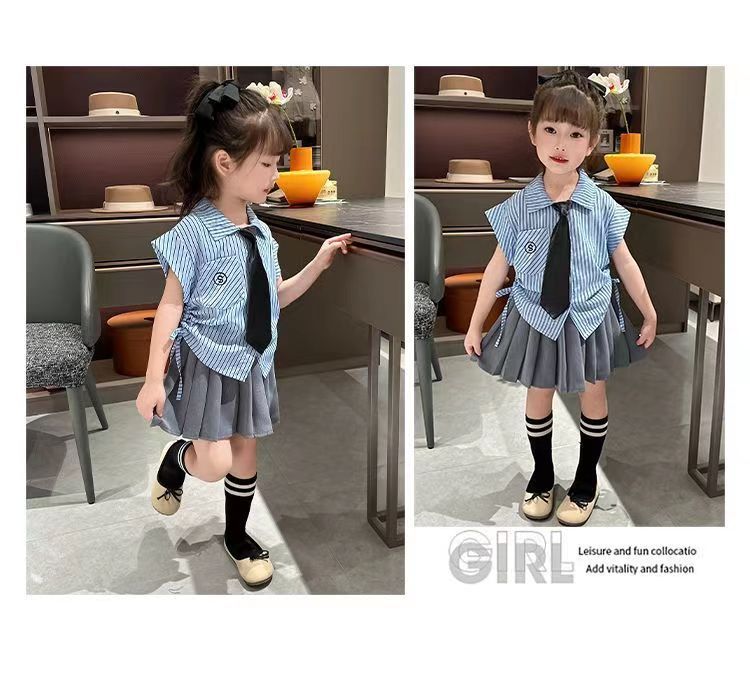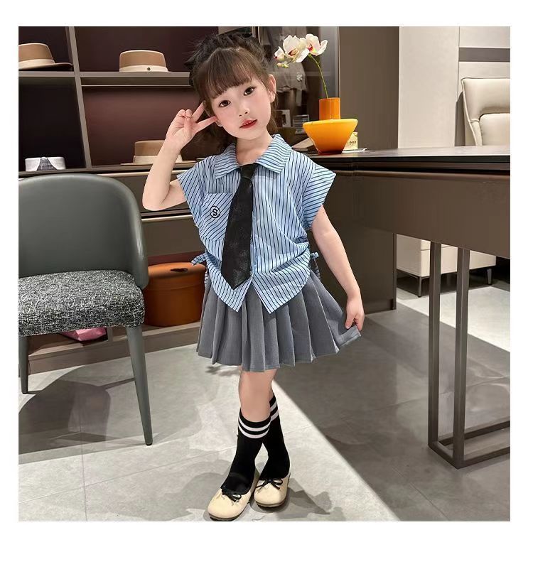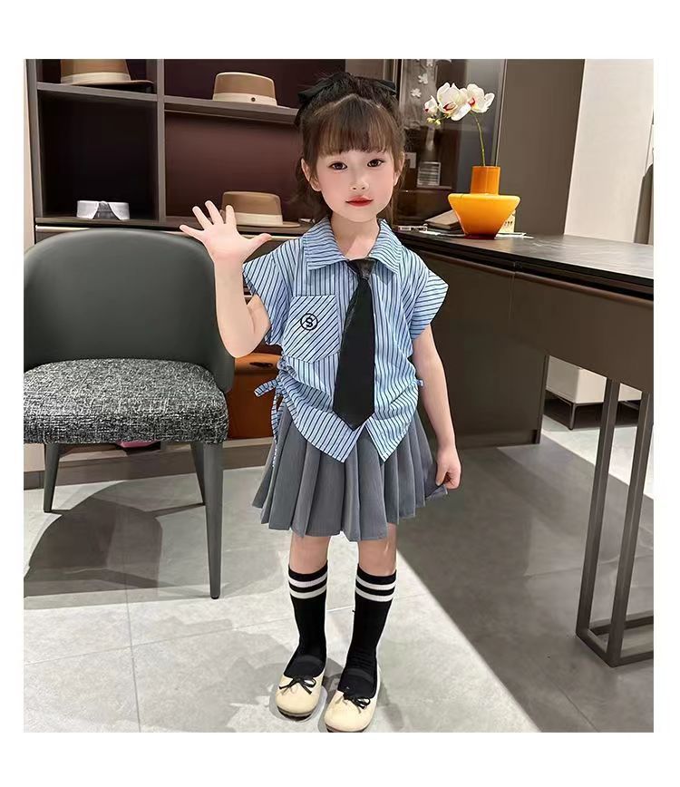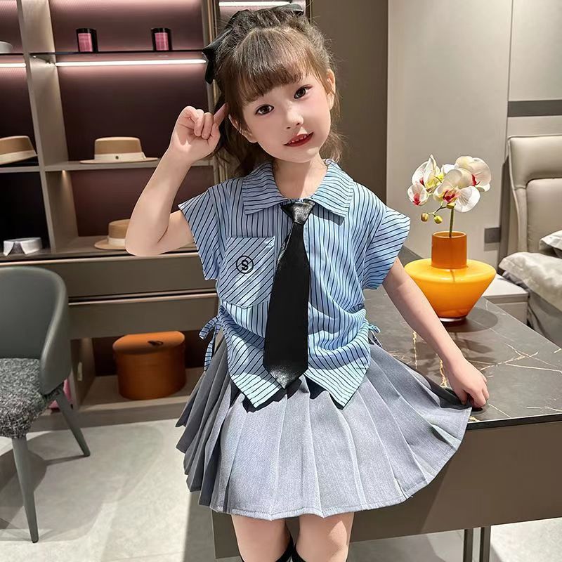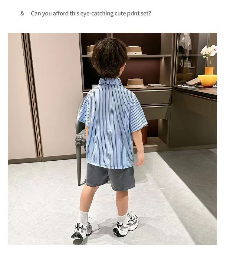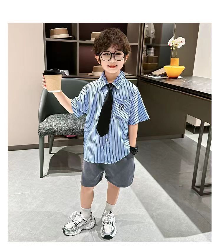 남자들의 여름 2024 새로운 세트 어린이 잘 생긴 유행 여자 대학 스타일 셔츠 반바지 투피스 세트