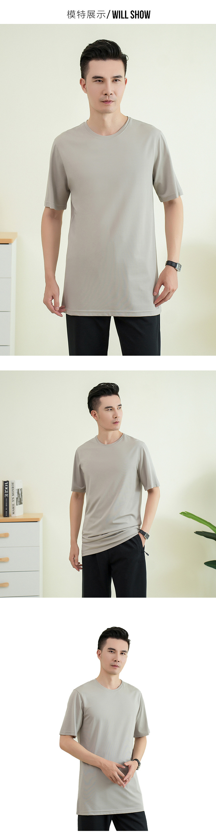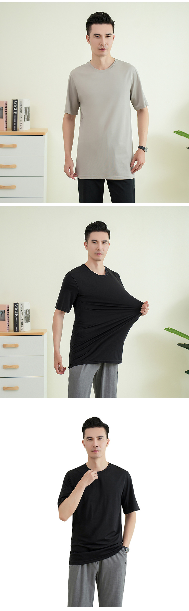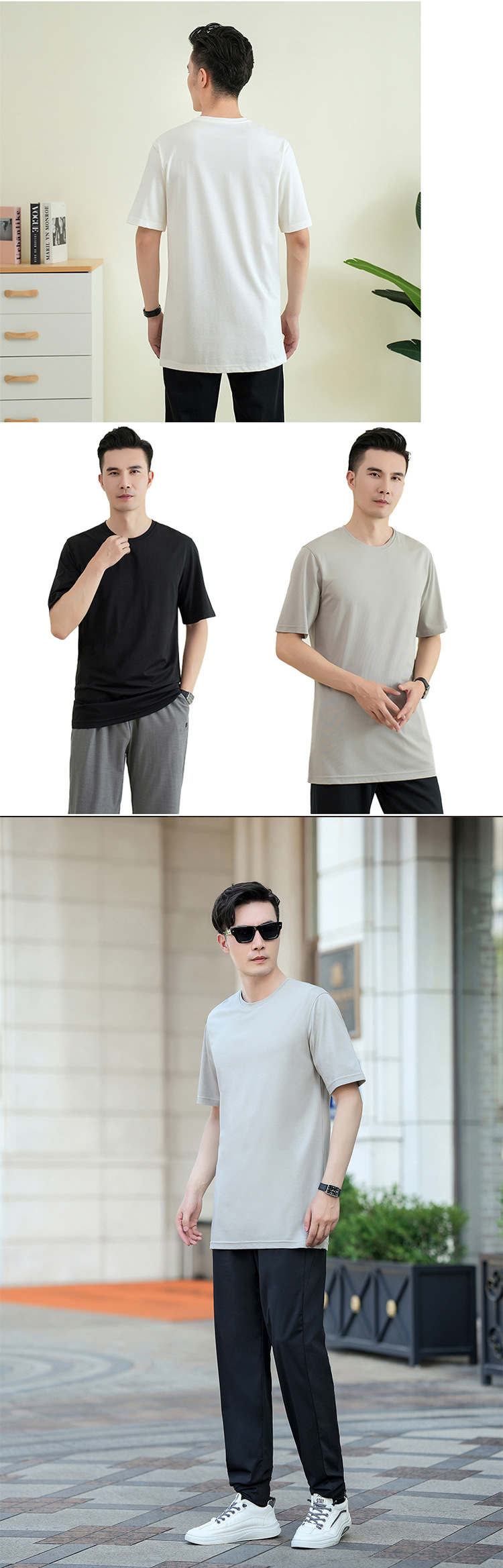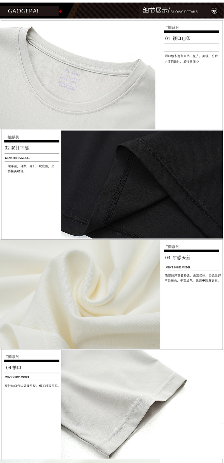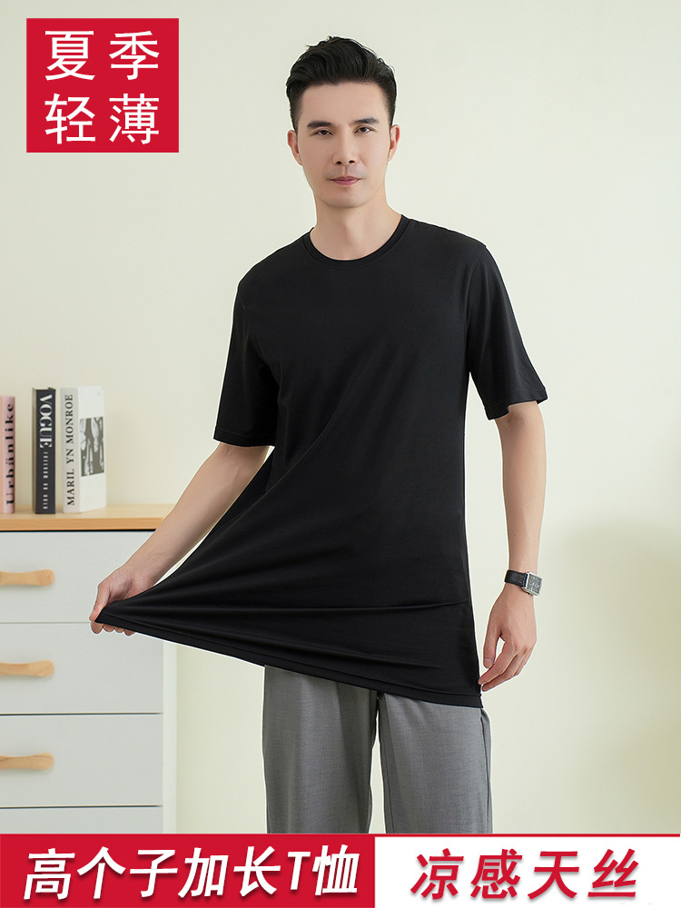젊은 키가 큰 시원한 텐셀 크루 넥 짧은 소매 스트레이트 스트레치 플러스 사이즈 남자 여름 얇은 2430스토어 가기