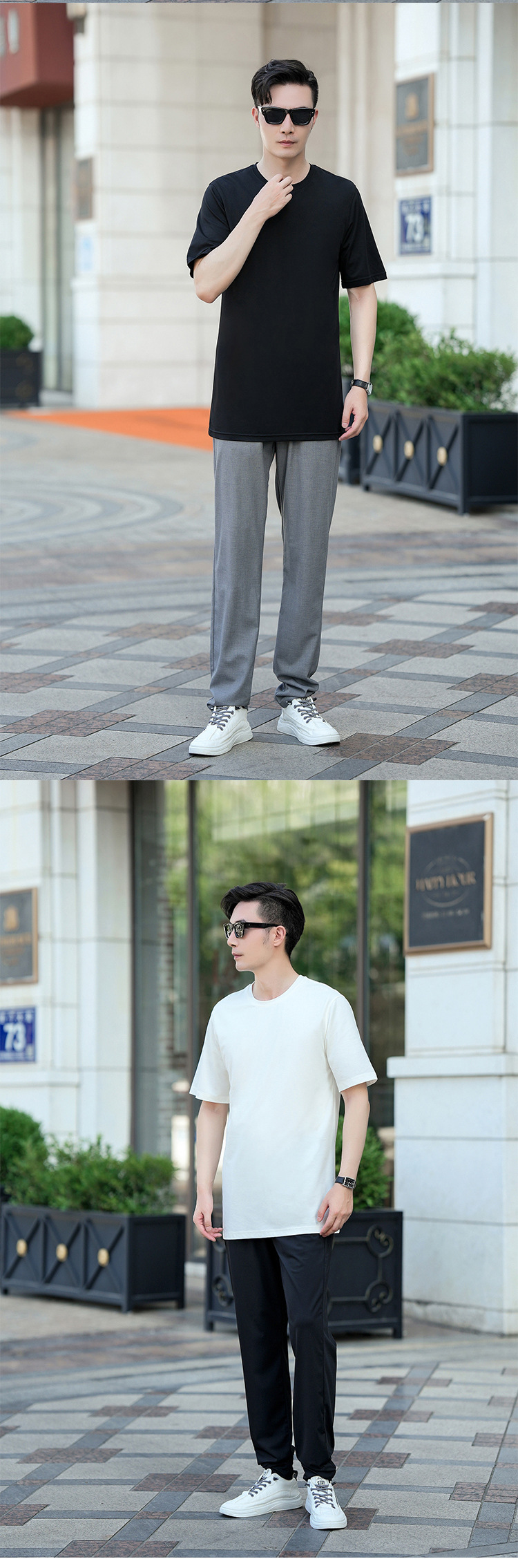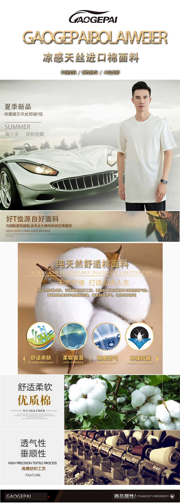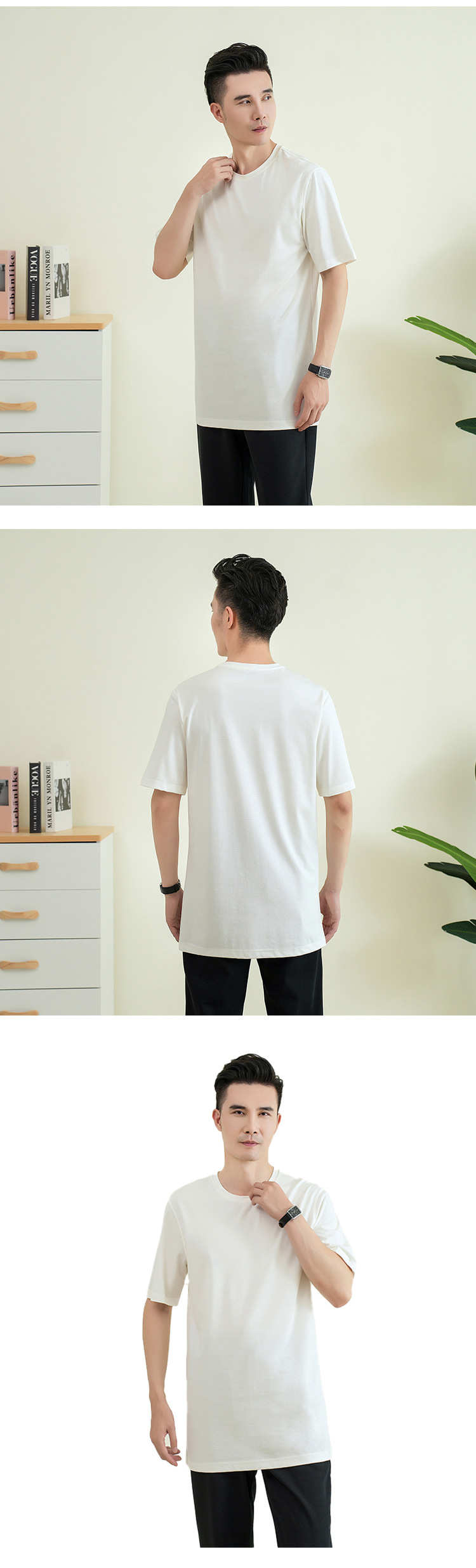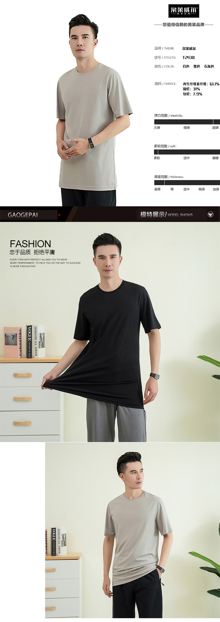 젊은 키가 큰 시원한 텐셀 크루 넥 짧은 소매 스트레이트 스트레치 플러스 사이즈 남자 여름 얇은 2430스토어 가기