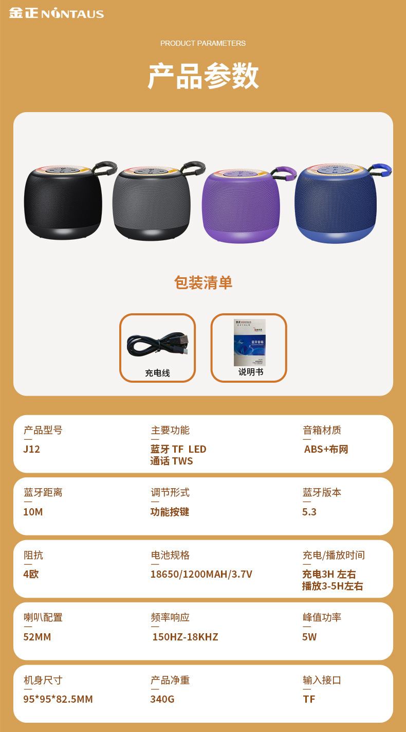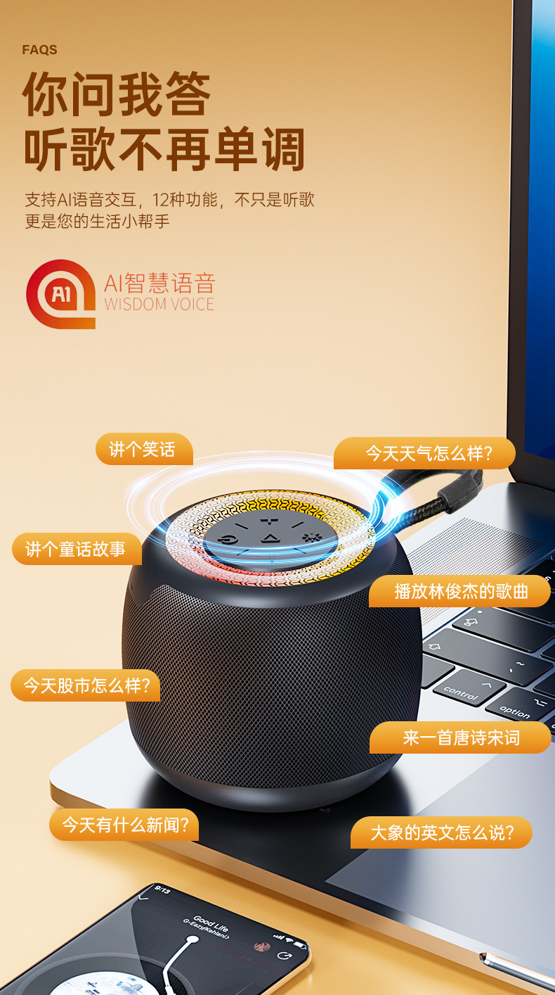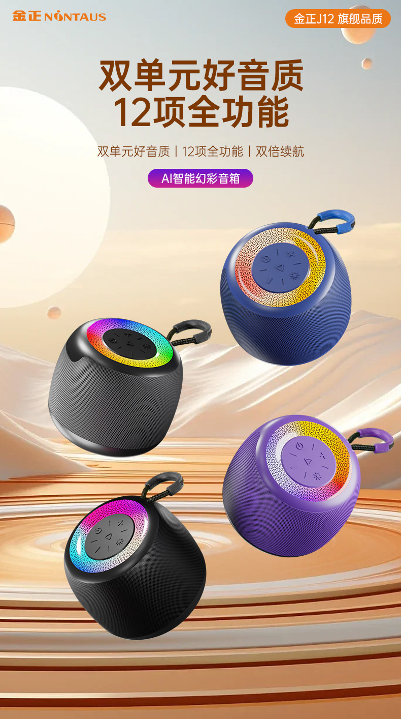 Jinzheng J12 스마트 AI 무선 블루투스 스피커 대용량 휴대용 야외 홈 오디오 자동차 서브 우퍼