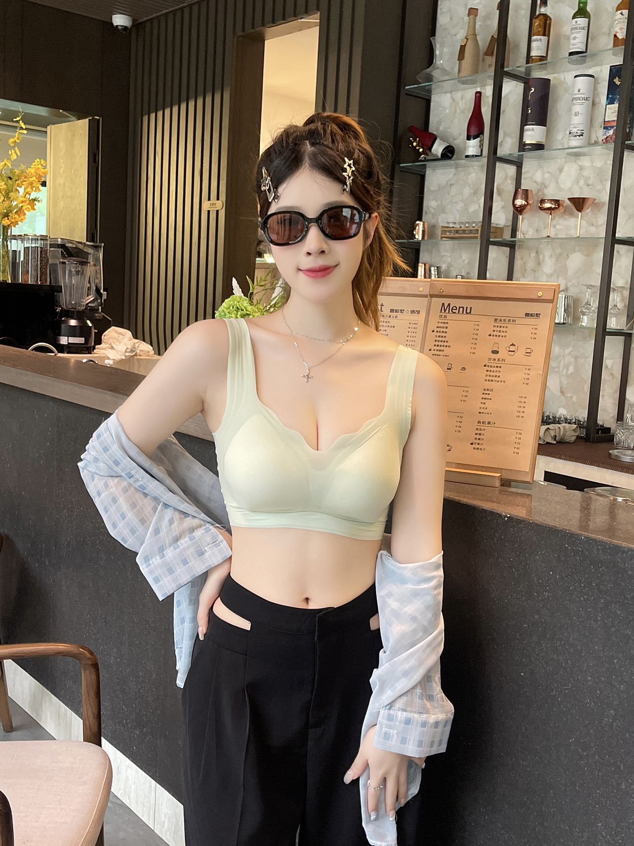 Traceless Bra Fixed Cup 대형 가슴 푸쉬 업 처짐 No-rims 속옷 편안한 핏 탑업 스포츠 브라