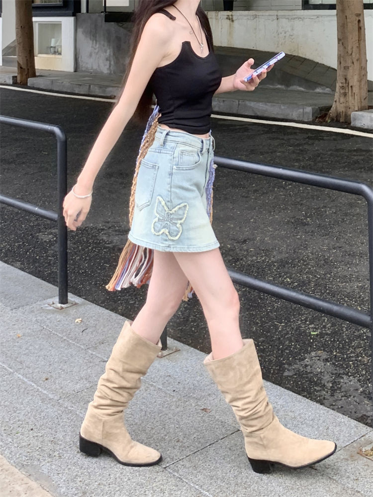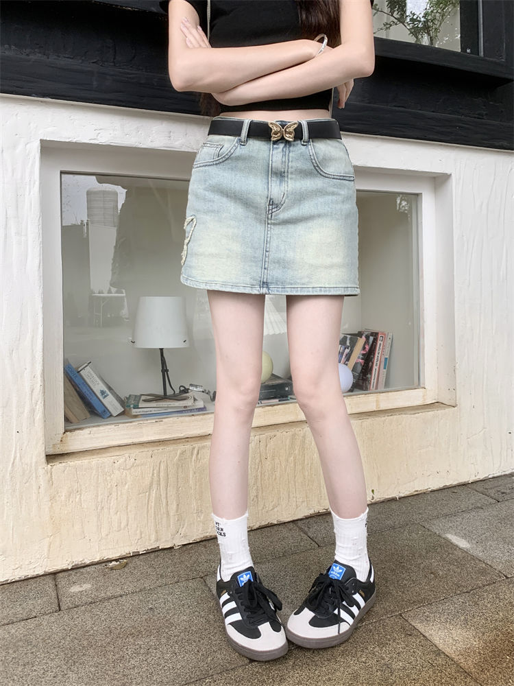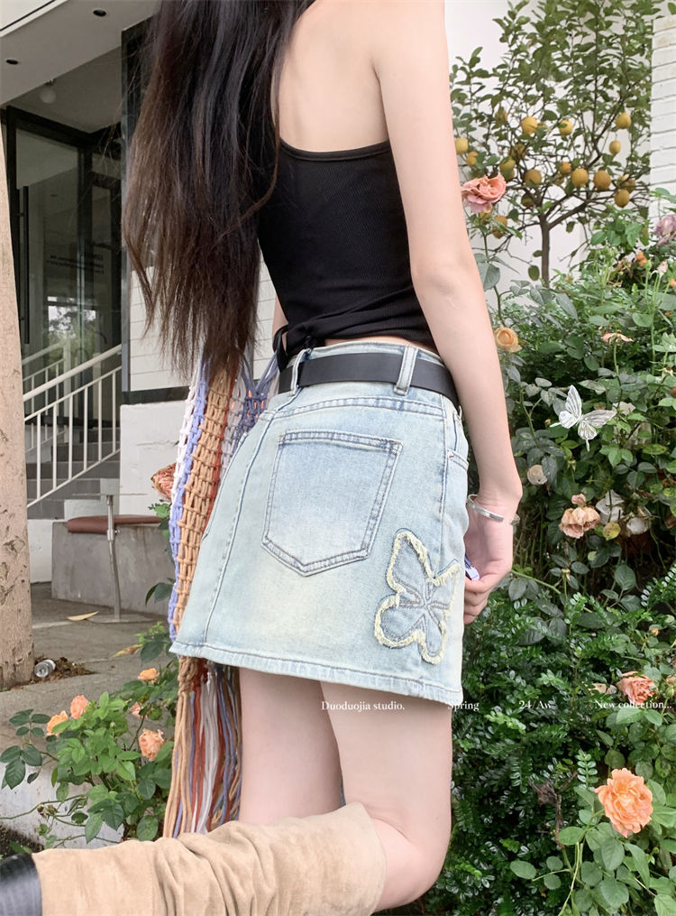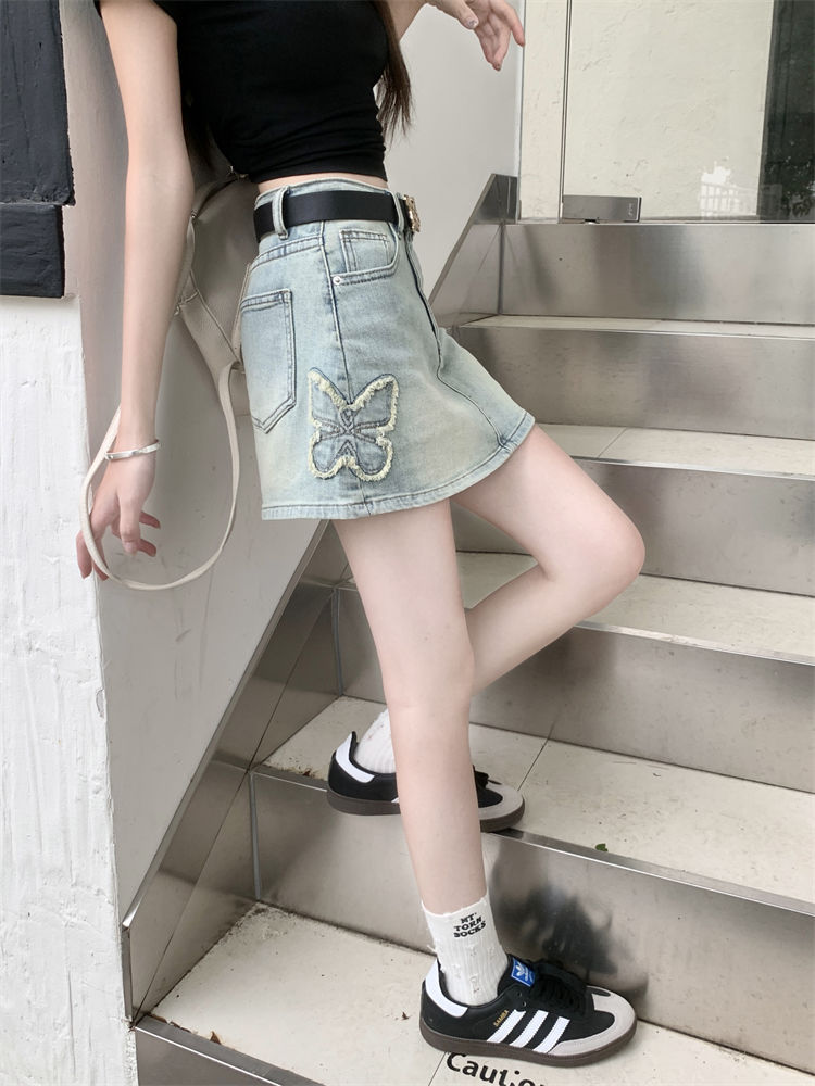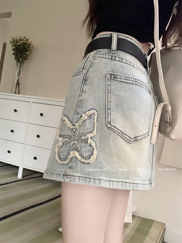 미국 틈새 디자인 센스 나비 데님 스커트 스커트 여자 2024 년 여름 새로운 슬리밍 올 매치 쇼트 스커트