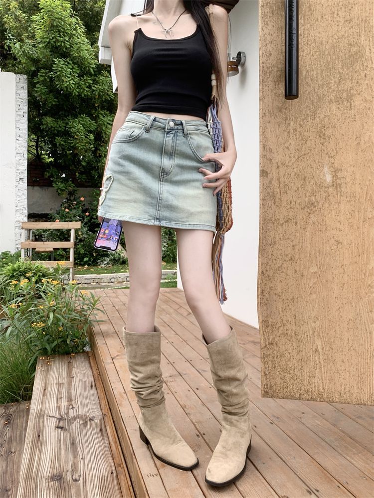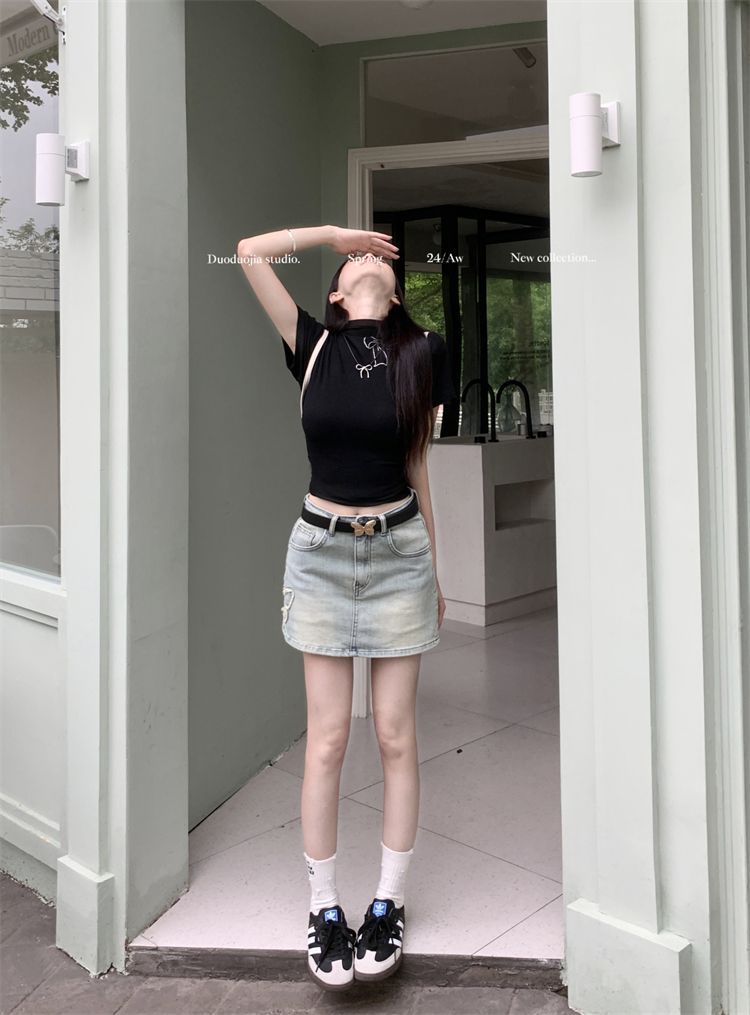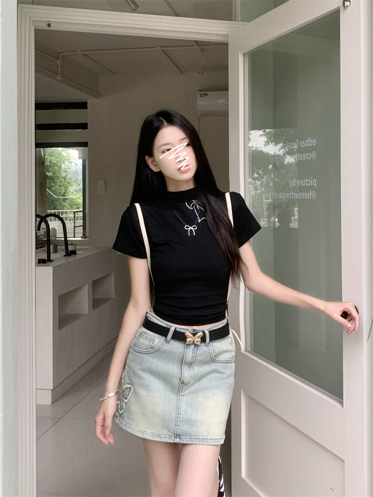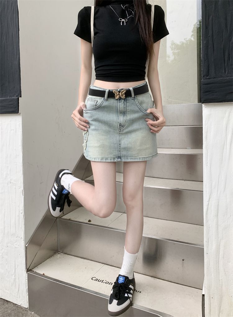 미국 틈새 디자인 센스 나비 데님 스커트 스커트 여자 2024 년 여름 새로운 슬리밍 올 매치 쇼트 스커트