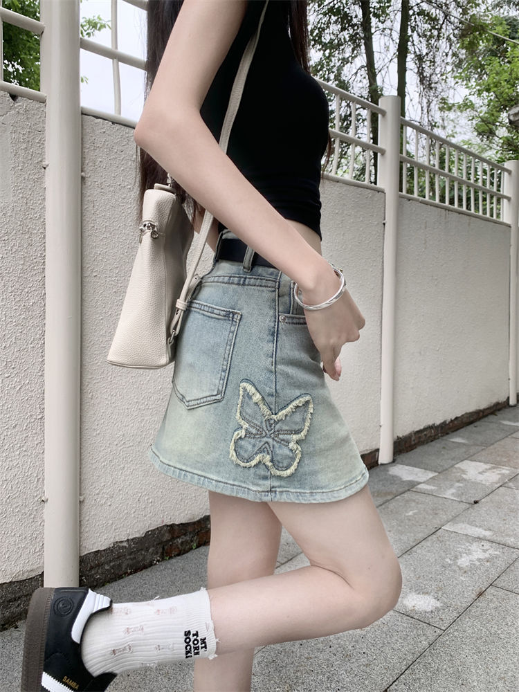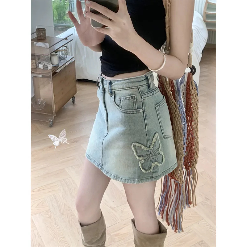 미국 틈새 디자인 센스 나비 데님 스커트 스커트 여자 2024 년 여름 새로운 슬리밍 올 매치 쇼트 스커트스토어 가기