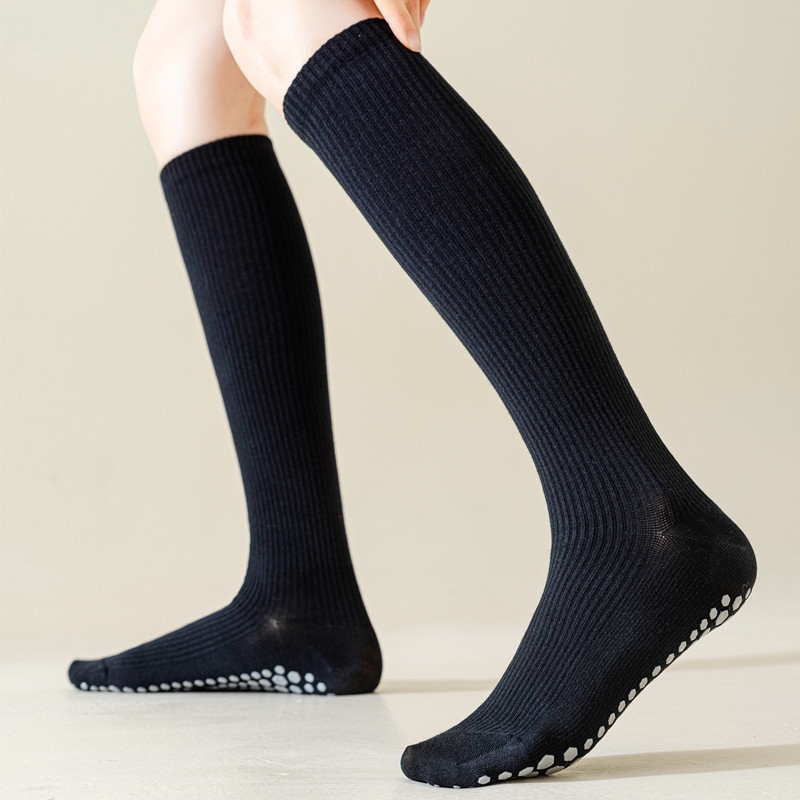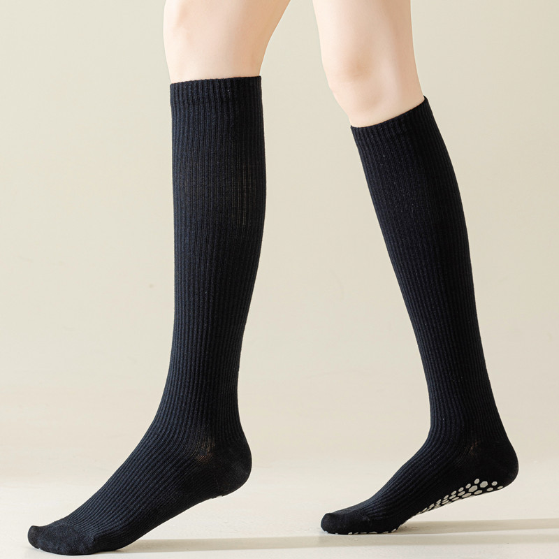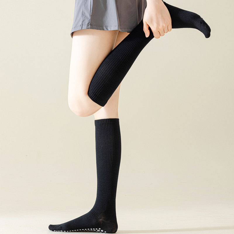 압력 긴 튜브 요가 양말 전문 미끄럼 방지 필라테스 양말 여성 봄과 가을 피트니스 댄스 단색 그리기 다리 양말