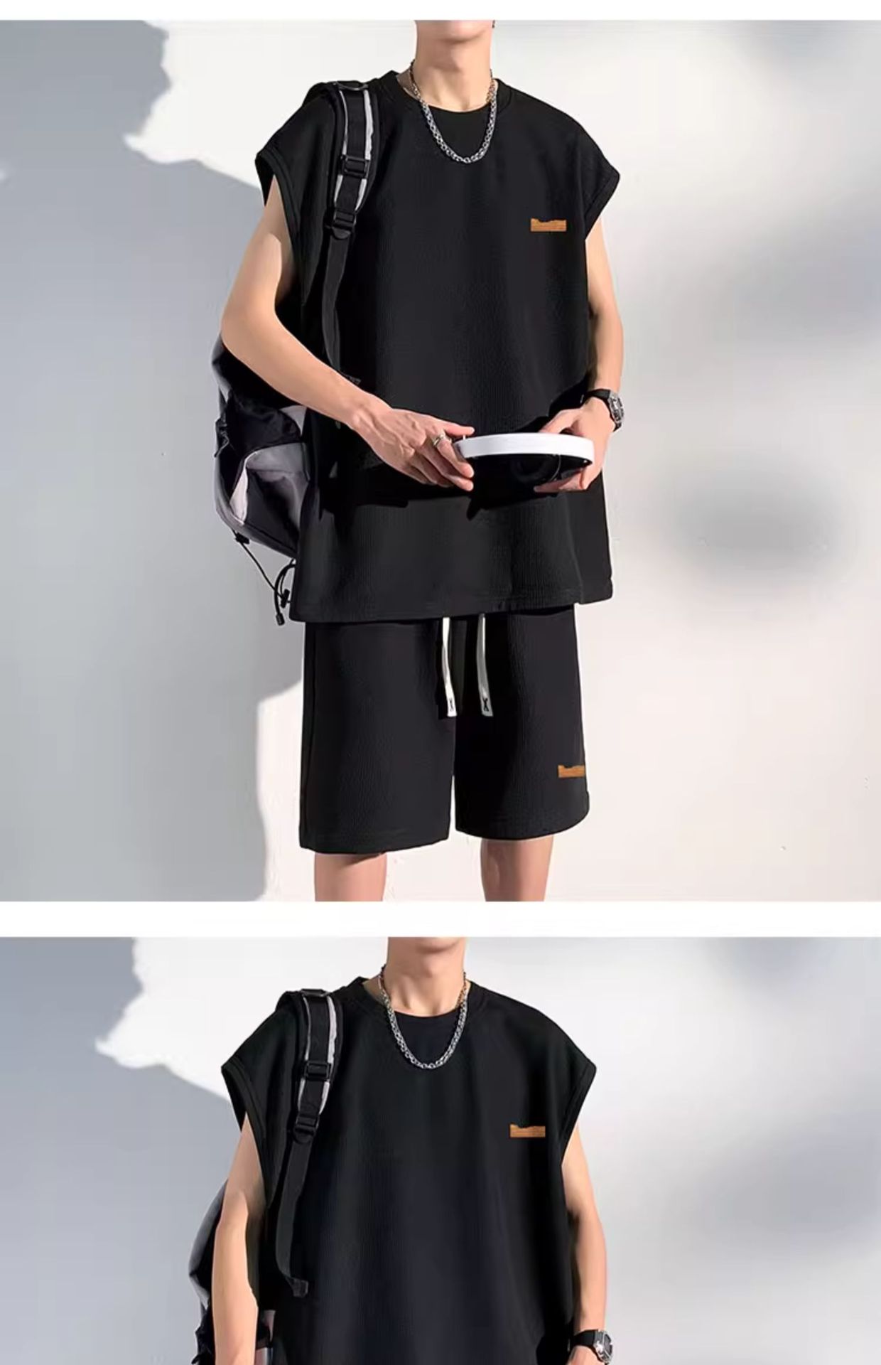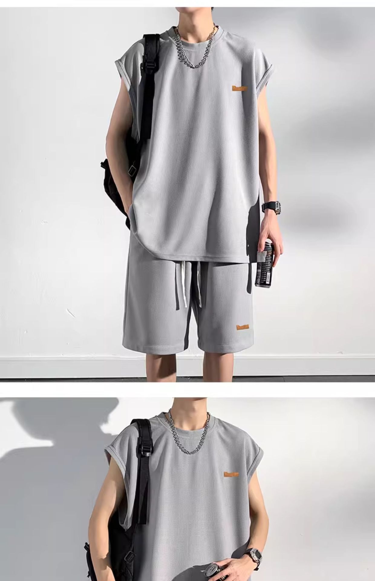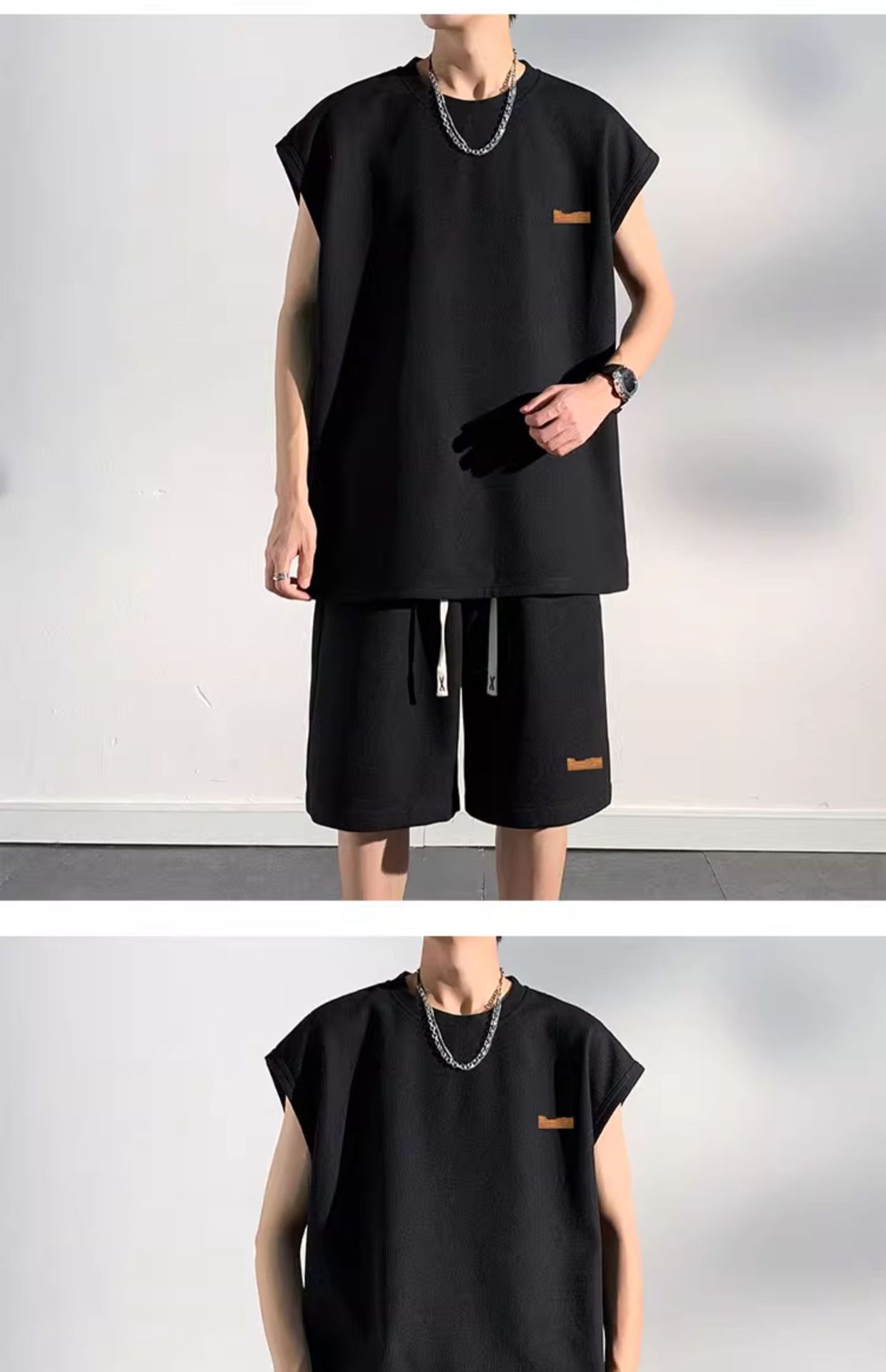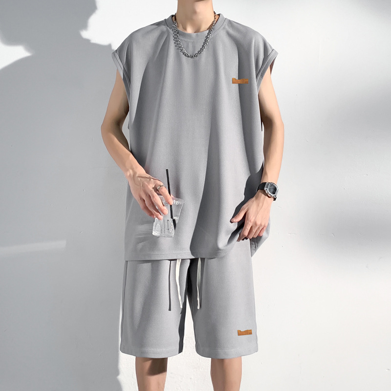 민소매 남성 티셔츠 2024 여름 남성 조끼 스포츠 세트 반바지 피트니스 볼 옷 반팔 양복 조끼스토어 가기