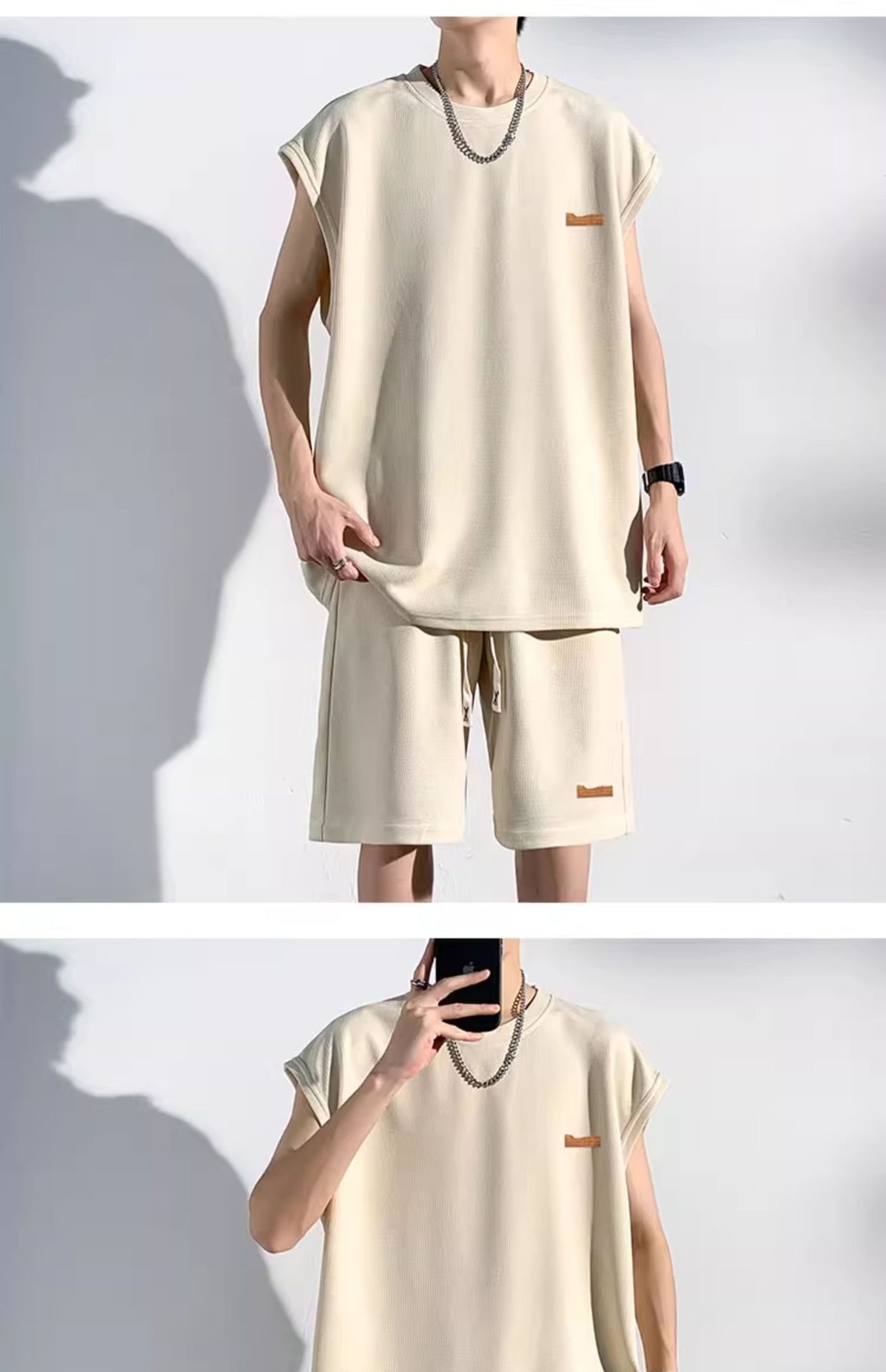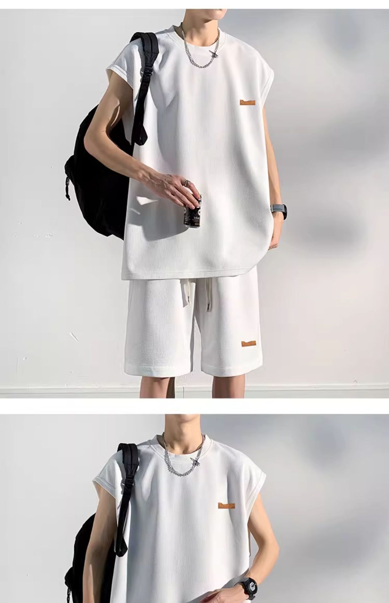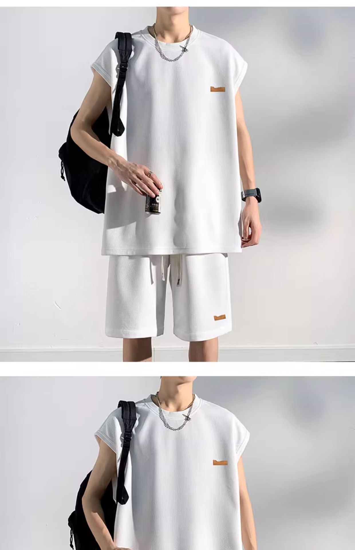 민소매 남성 티셔츠 2024 여름 남성 조끼 스포츠 세트 반바지 피트니스 볼 옷 반팔 양복 조끼스토어 가기