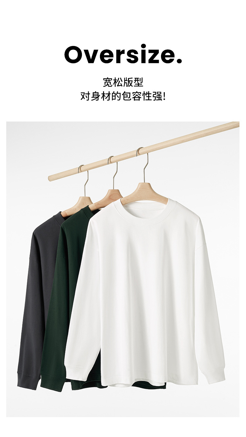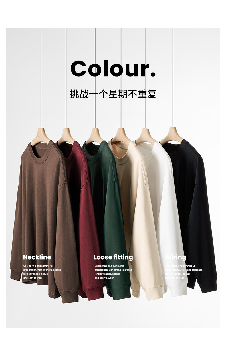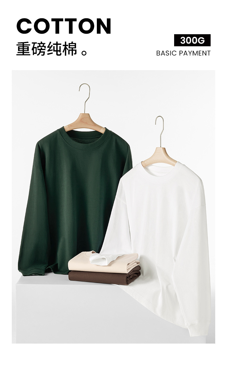 300g 무거운 일본 간단한 단색 긴팔 티셔츠 남성용 2024 년 가을/겨울 조커 코튼 남성용 바닥 셔츠