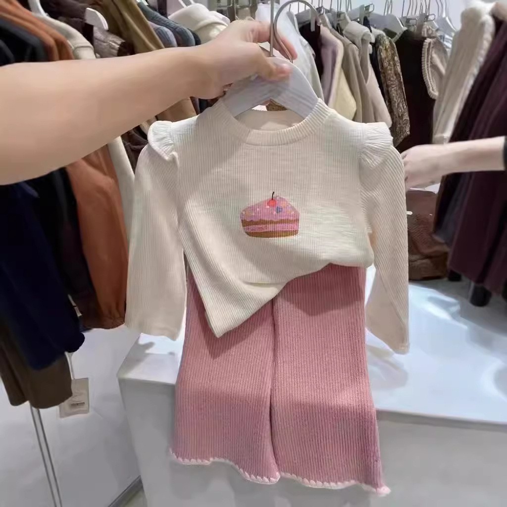 한 팬 아동복 소녀 가을 세트 세련된 어린이 유행 니트웨어 아기 소녀의 핑크 바지 투피스 세트 트렌디스토어 가기
