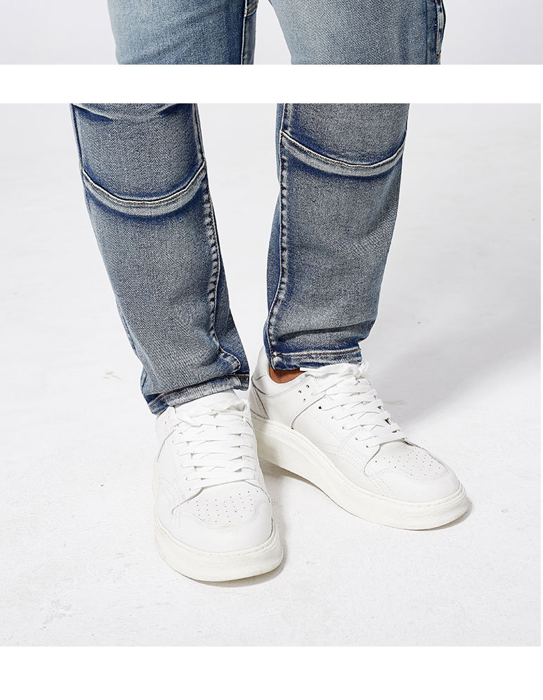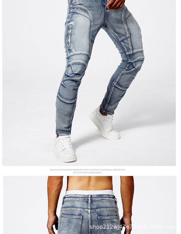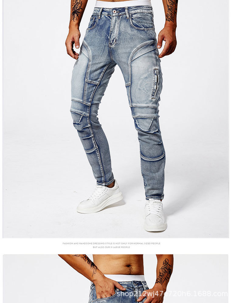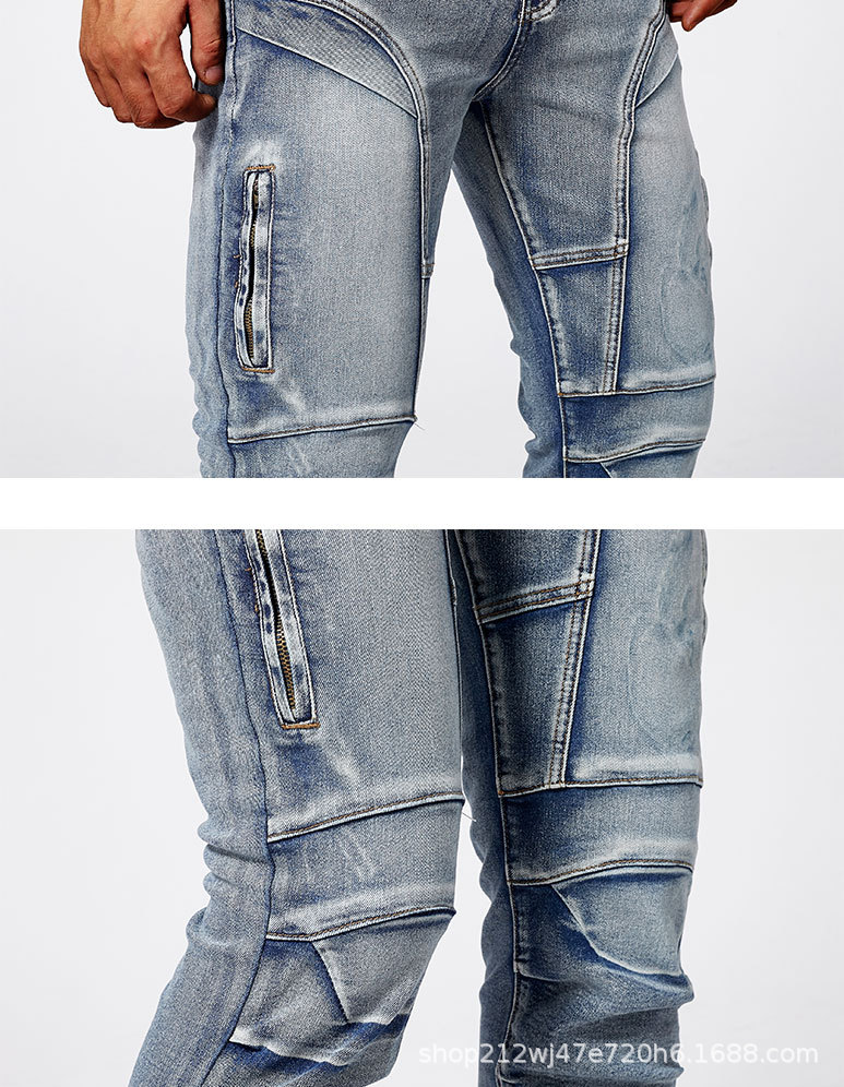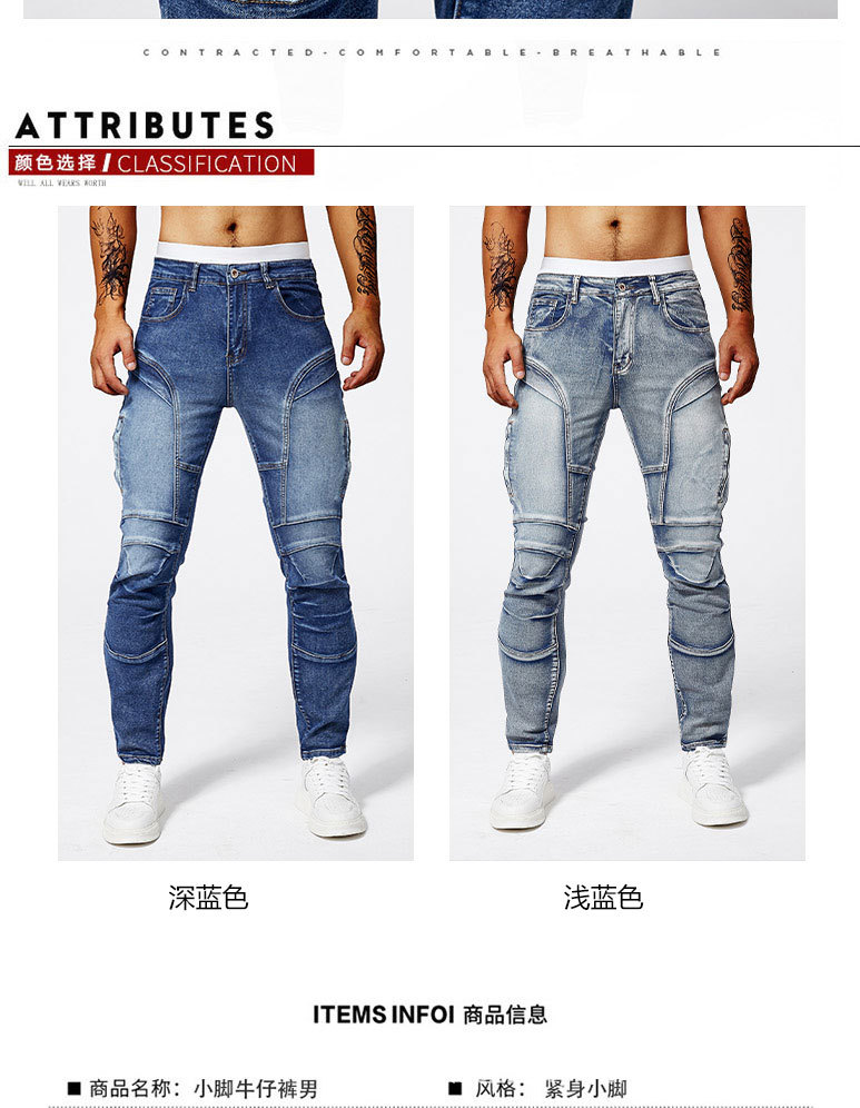 오토바이 스타일 청바지 남성 유럽 제품 스트리트 패션 탄성 슬림 피트 작은 다리 바지 남성 작은 스트레이트 다리 청바지 도매스토어 가기
