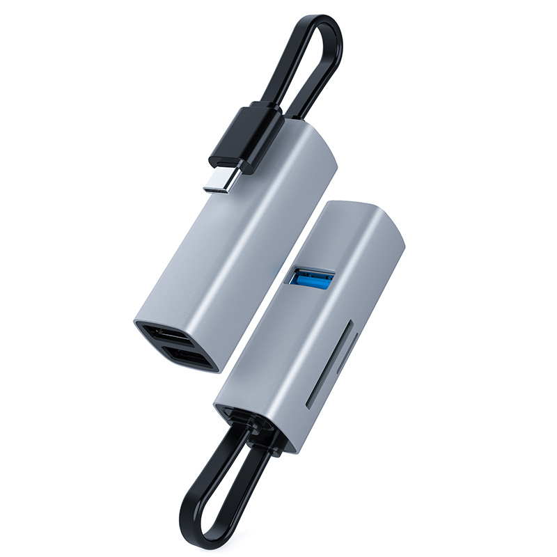 수납형 HUB 확장 도크 알루미늄 합금 Type-c USB3.0 확장 허브 4K HDTV 허브 다기능스토어 가기