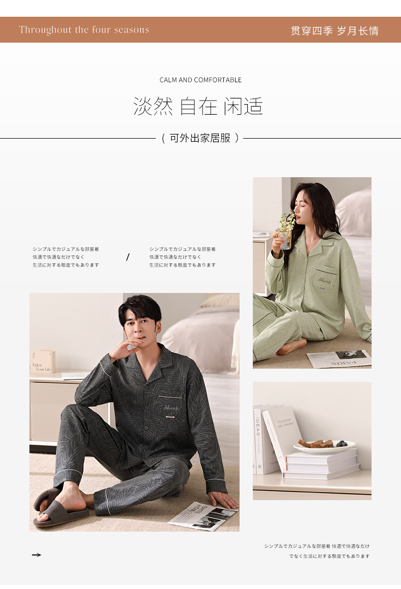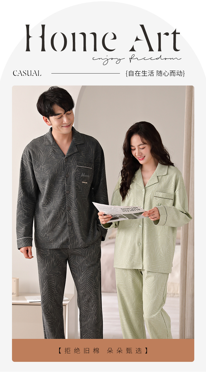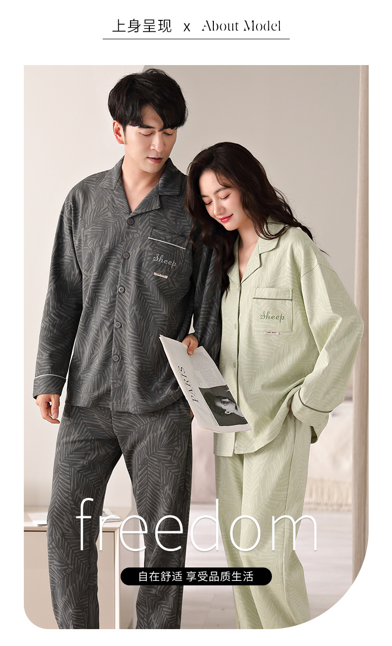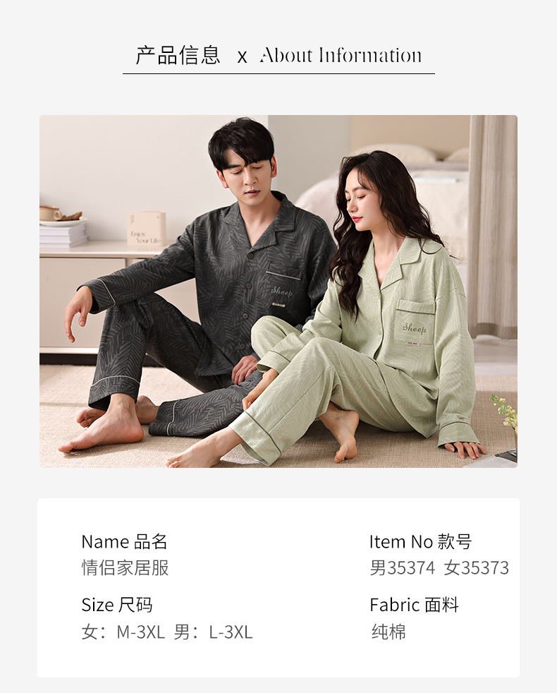 2024 년 가을 커플 잠옷 여성용 순수 코튼 긴팔 세트 간단한 캐주얼 남성 홈 의류 가을과 겨울을위한 느슨한 플러스 사이즈스토어 가기