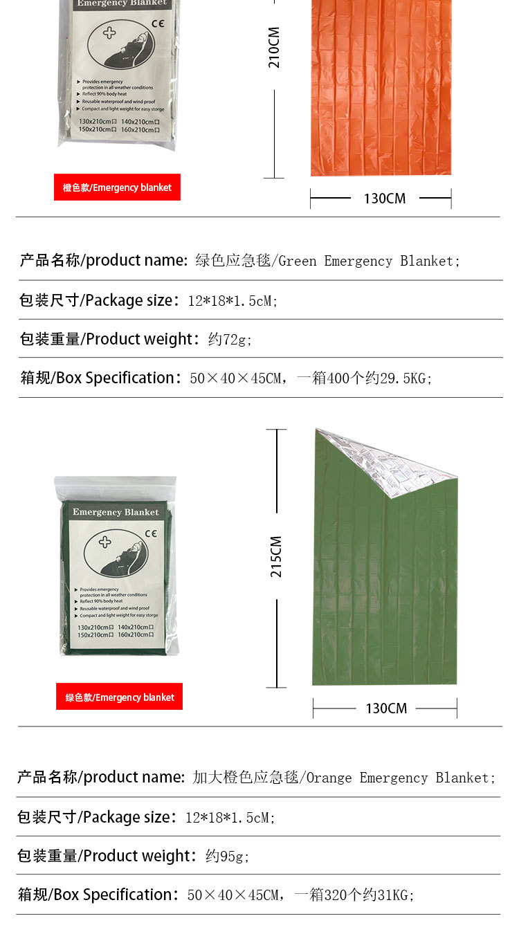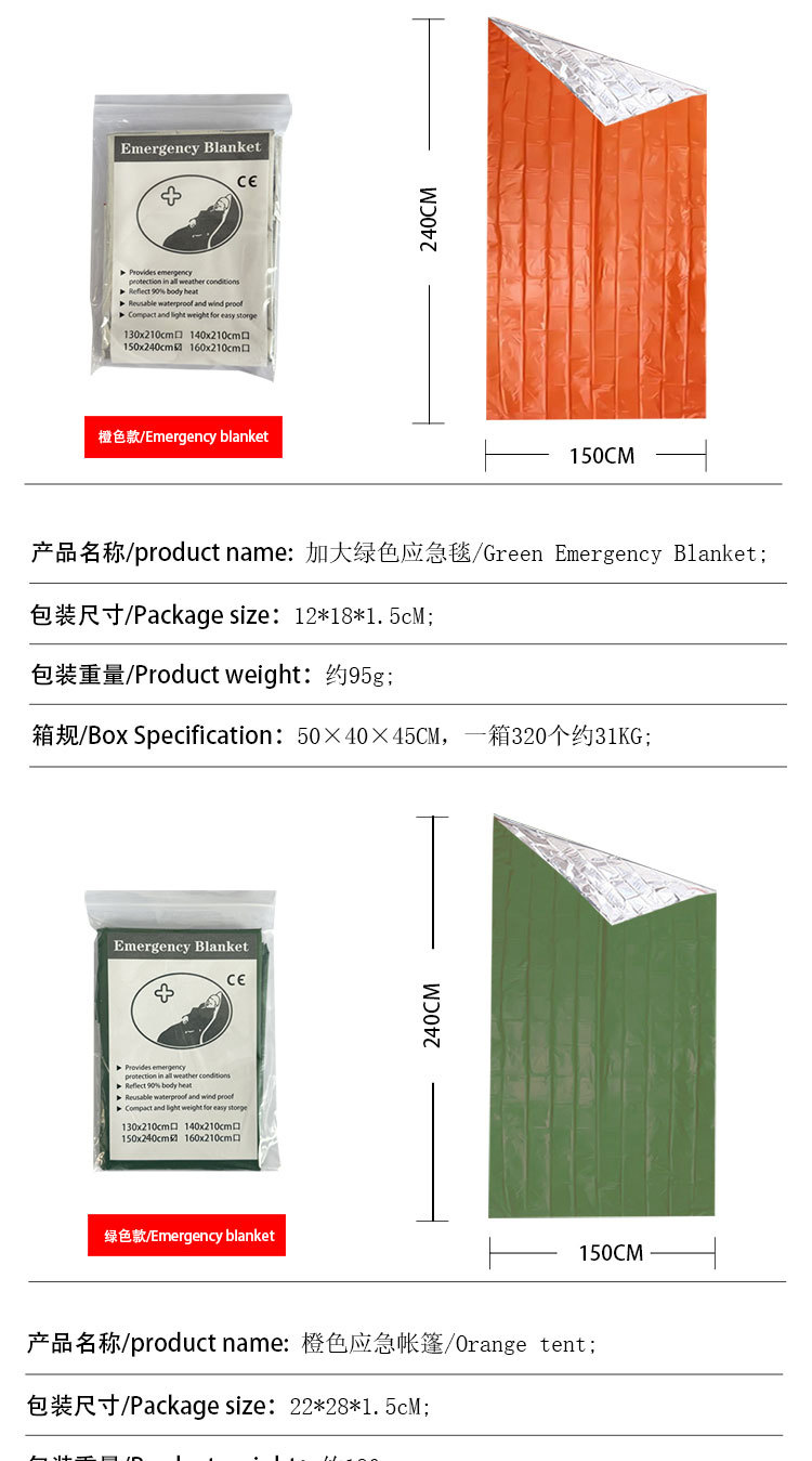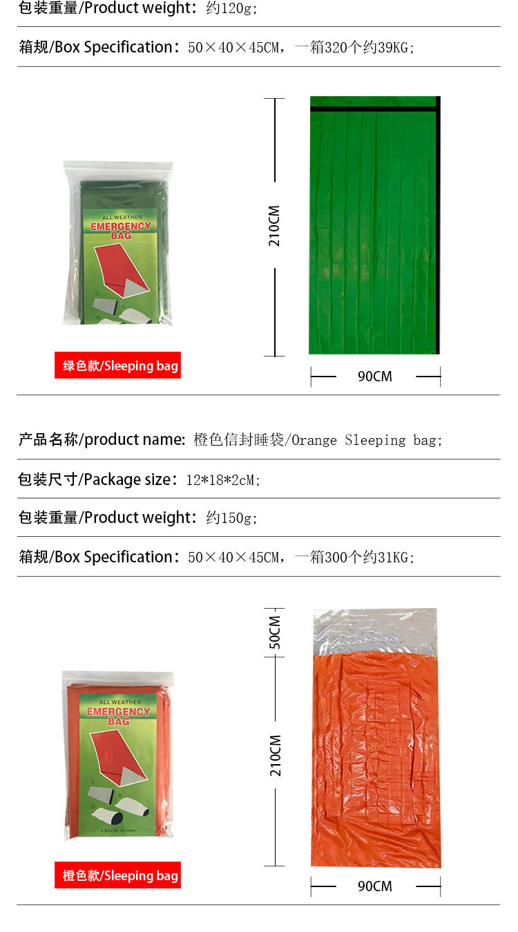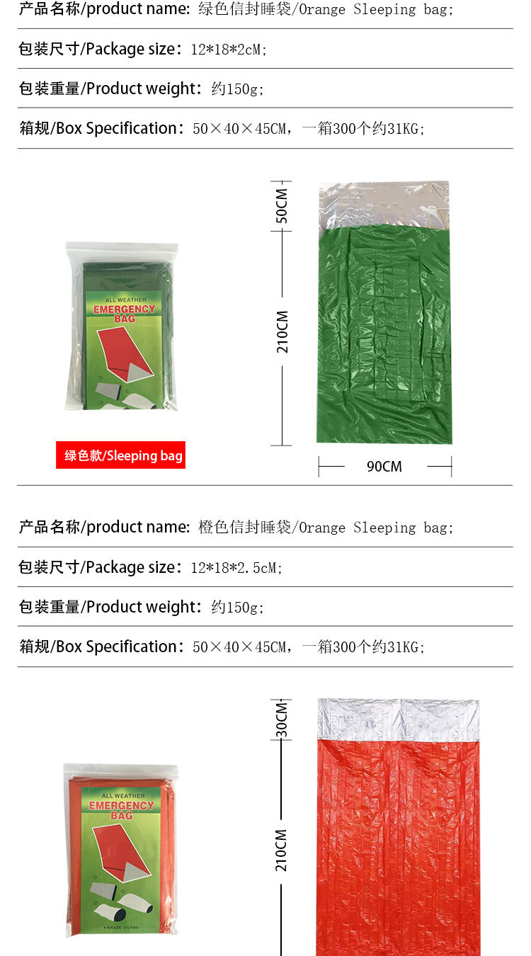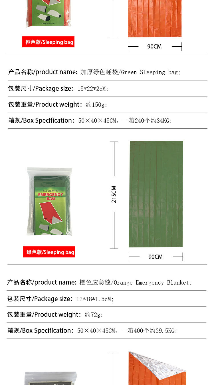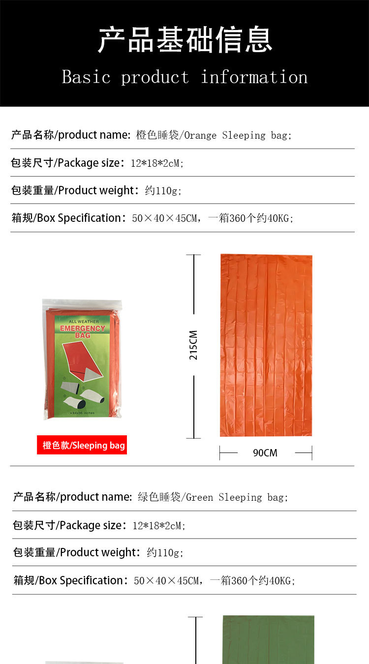 야외 여행 비상 슬리핑 백 휴대용 야외 캠핑 따뜻한 구명 담요 냉간 실버 반사 비상 슬리핑 백