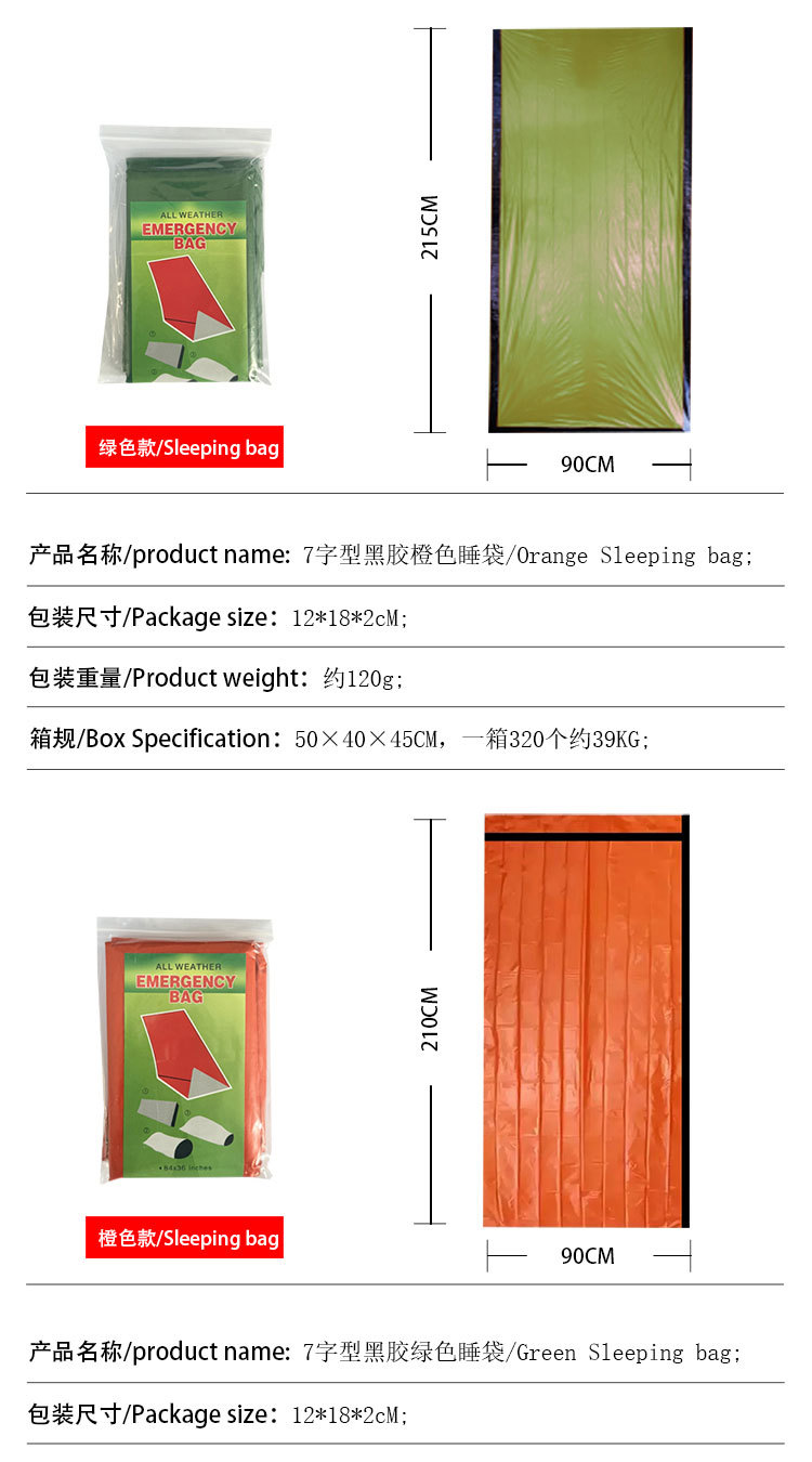 야외 여행 비상 슬리핑 백 휴대용 야외 캠핑 따뜻한 구명 담요 냉간 실버 반사 비상 슬리핑 백스토어 가기