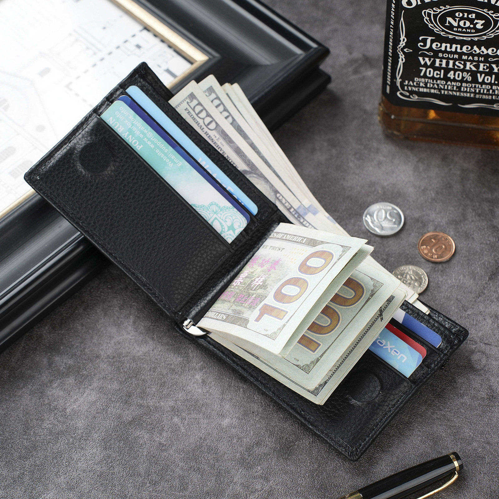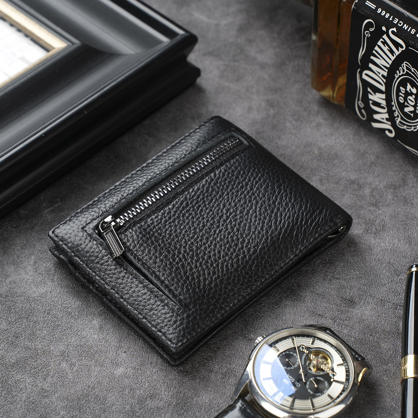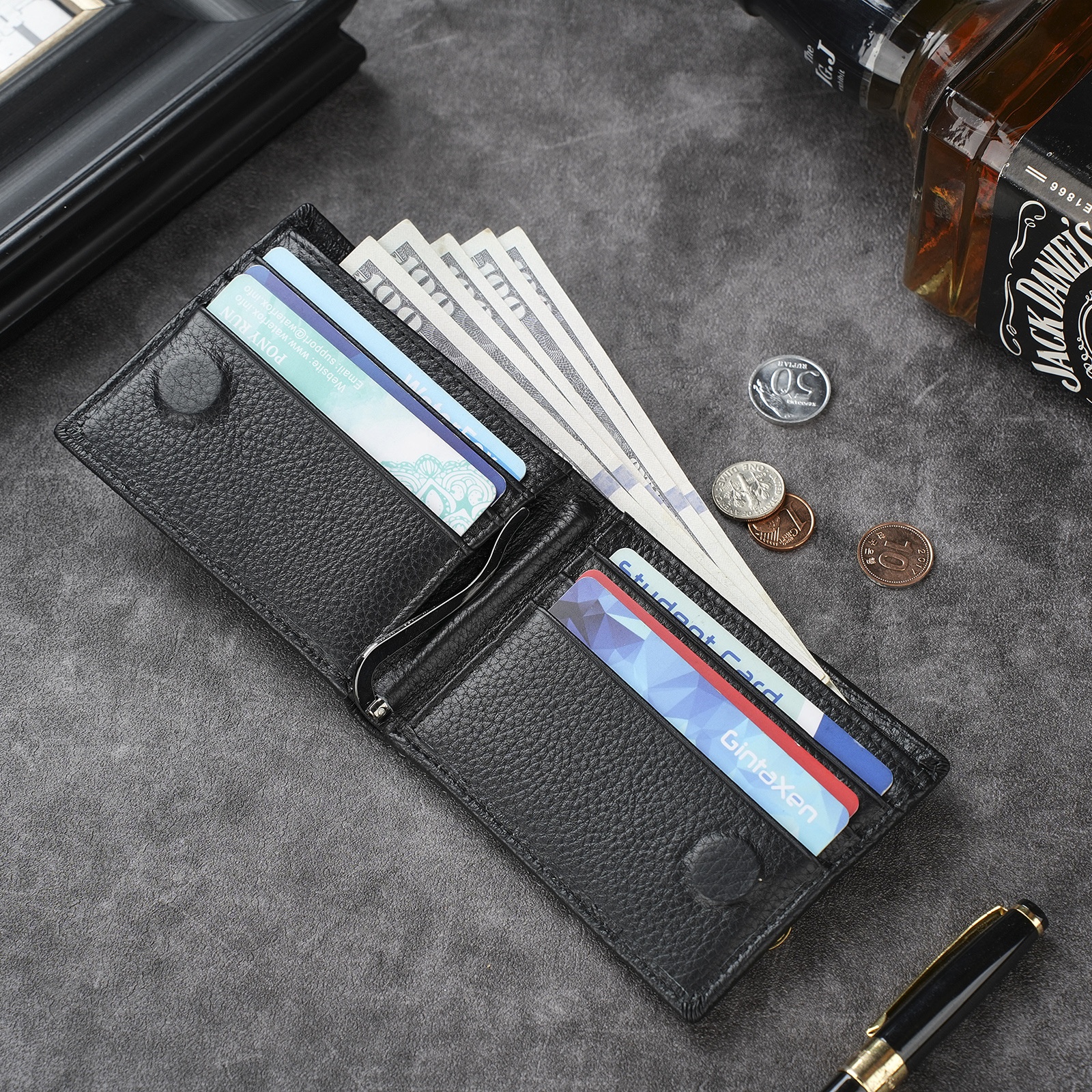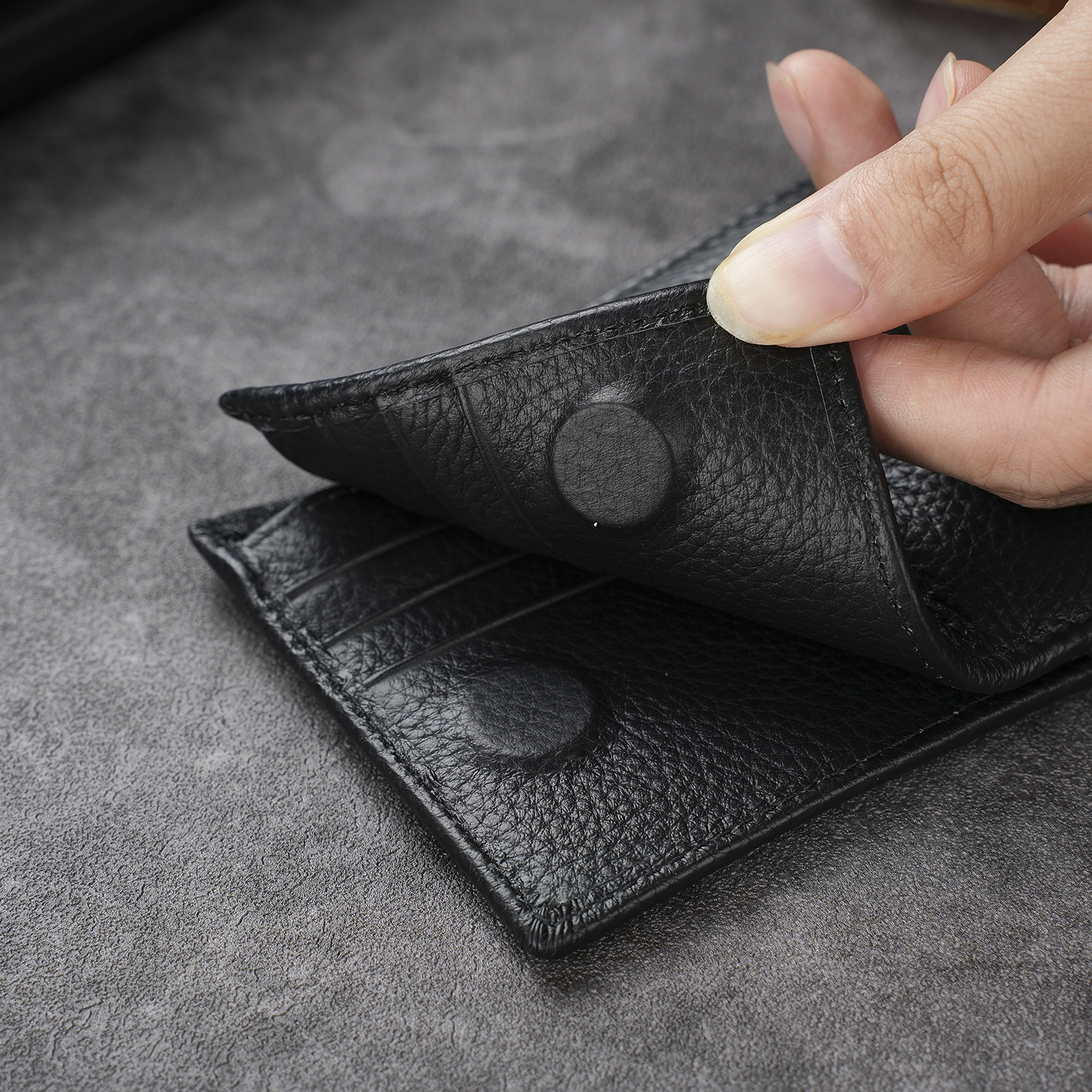 남성용 천연 가죽 지갑, 짧고 얇은 일층 소가죽 비즈니스 가방, 가로형 남성용 심플 트렌디 브랜드 도난 방지 카드 지갑스토어 가기