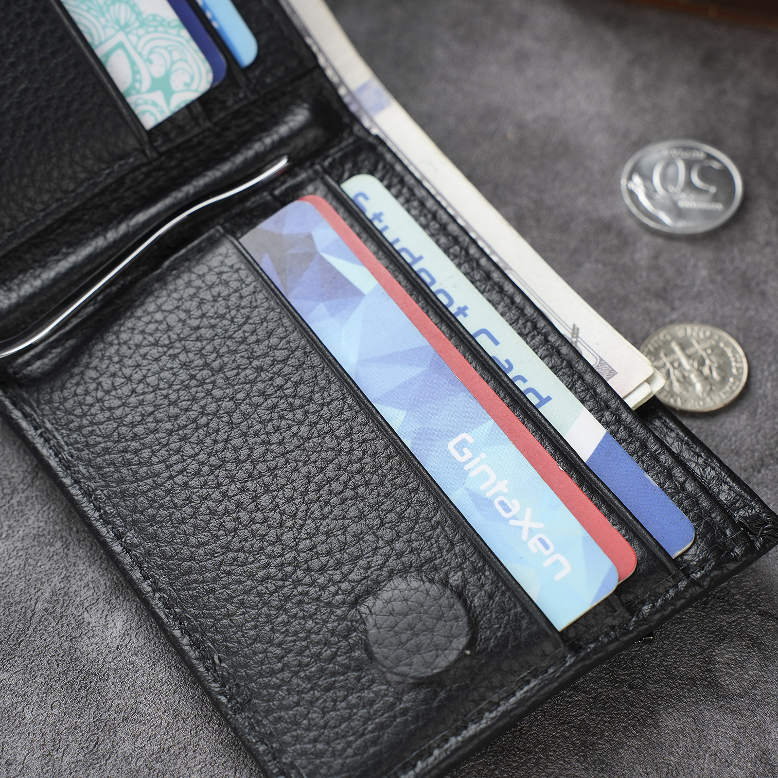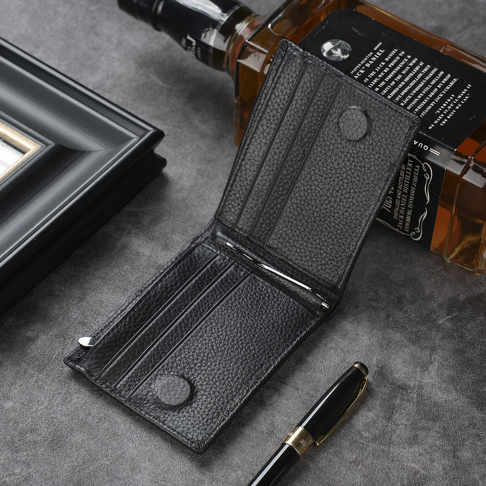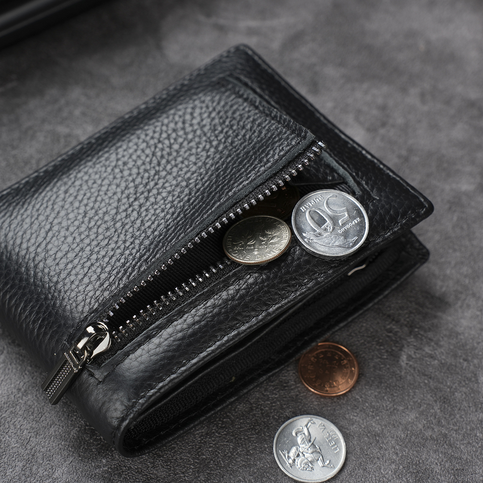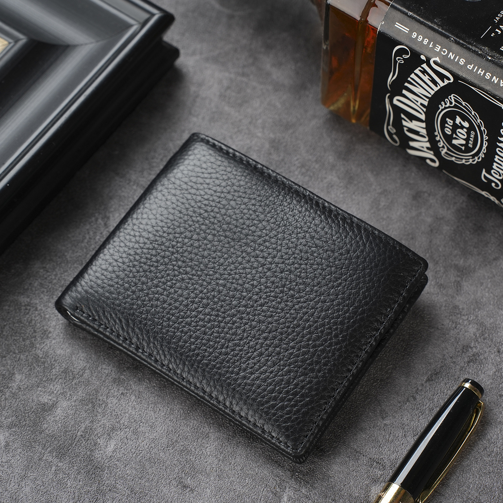 남성용 천연 가죽 지갑, 짧고 얇은 일층 소가죽 비즈니스 가방, 가로형 남성용 심플 트렌디 브랜드 도난 방지 카드 지갑스토어 가기