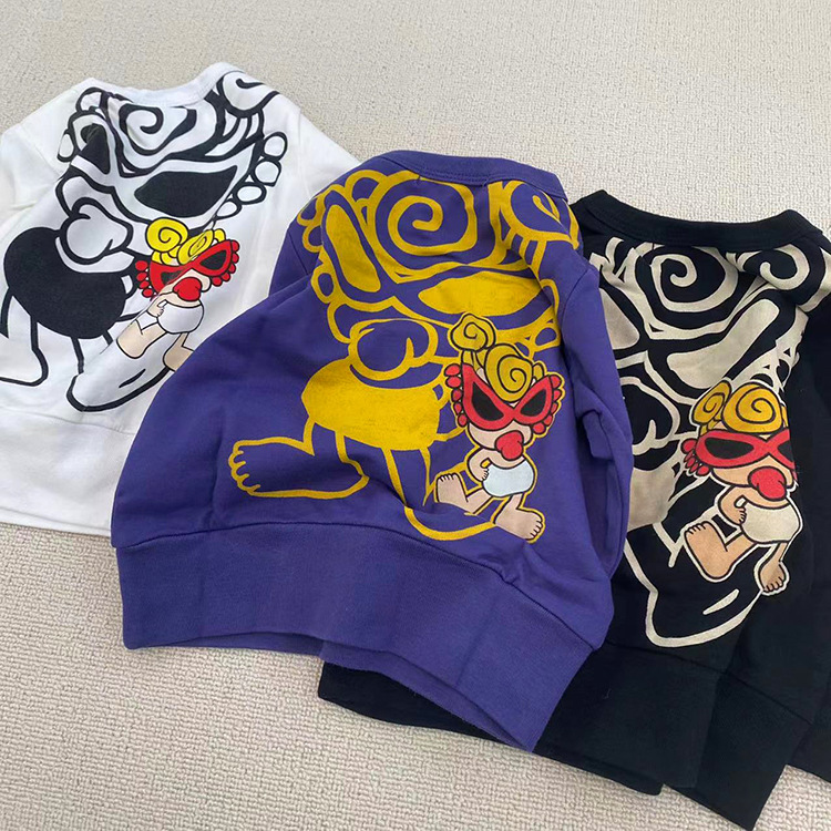 2024 가을과 겨울 부모-어린이 블랙 슈퍼 스웨트 셔츠 트렌디 쿨 풀링 아웃 어린이 스웨트 셔츠스토어 가기