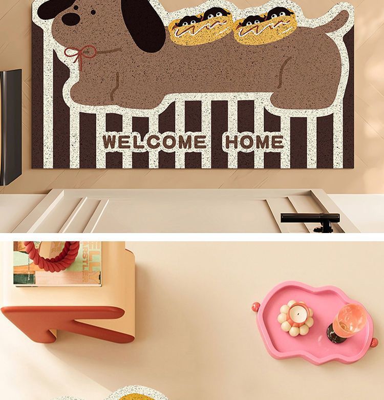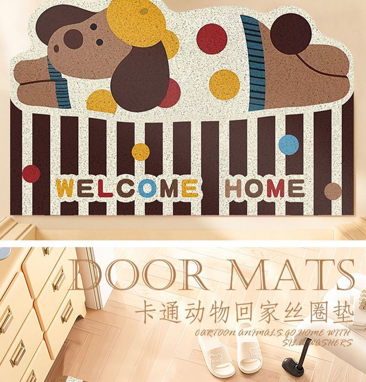만화 강아지 실크 루프 바닥 매트 문 먼지 방지 입구 입구 먼지 마찰 착용 방지 발 매트 절단 가능한 입구 바닥 매트스토어 가기