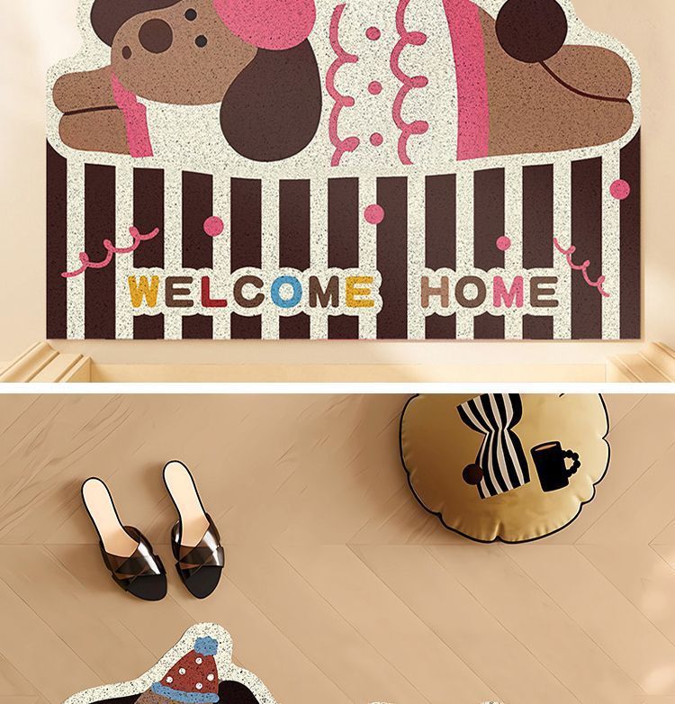 만화 강아지 실크 루프 바닥 매트 문 먼지 방지 입구 입구 먼지 마찰 착용 방지 발 매트 절단 가능한 입구 바닥 매트