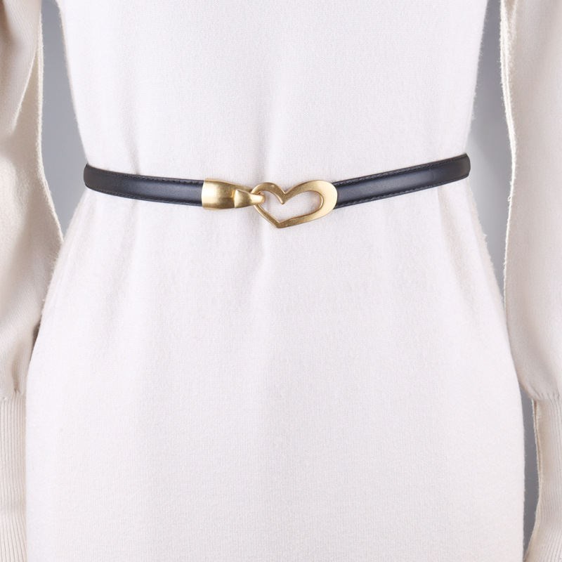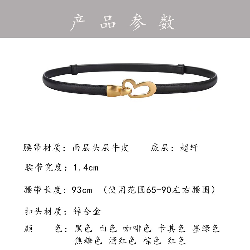 조정 가능한 얇은 벨트 여성용 원피스 허리 라인 장식 세트 재킷 블랙 퍼스트 레이어 소 가죽 작은 벨트 여성스토어 가기