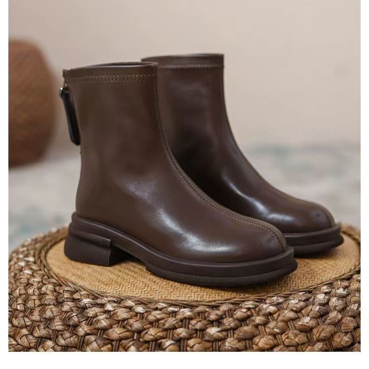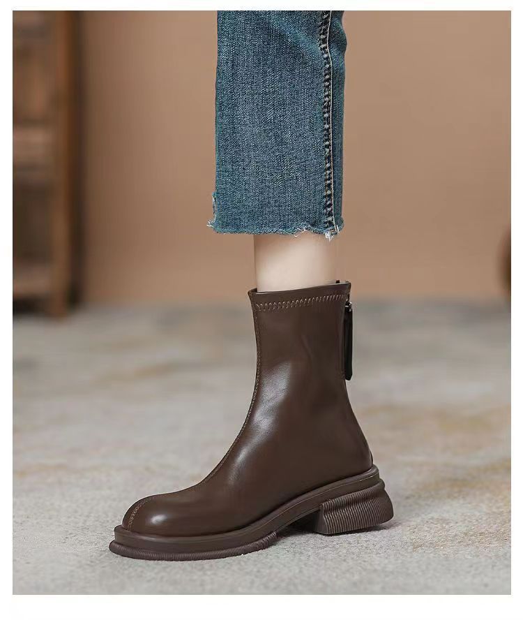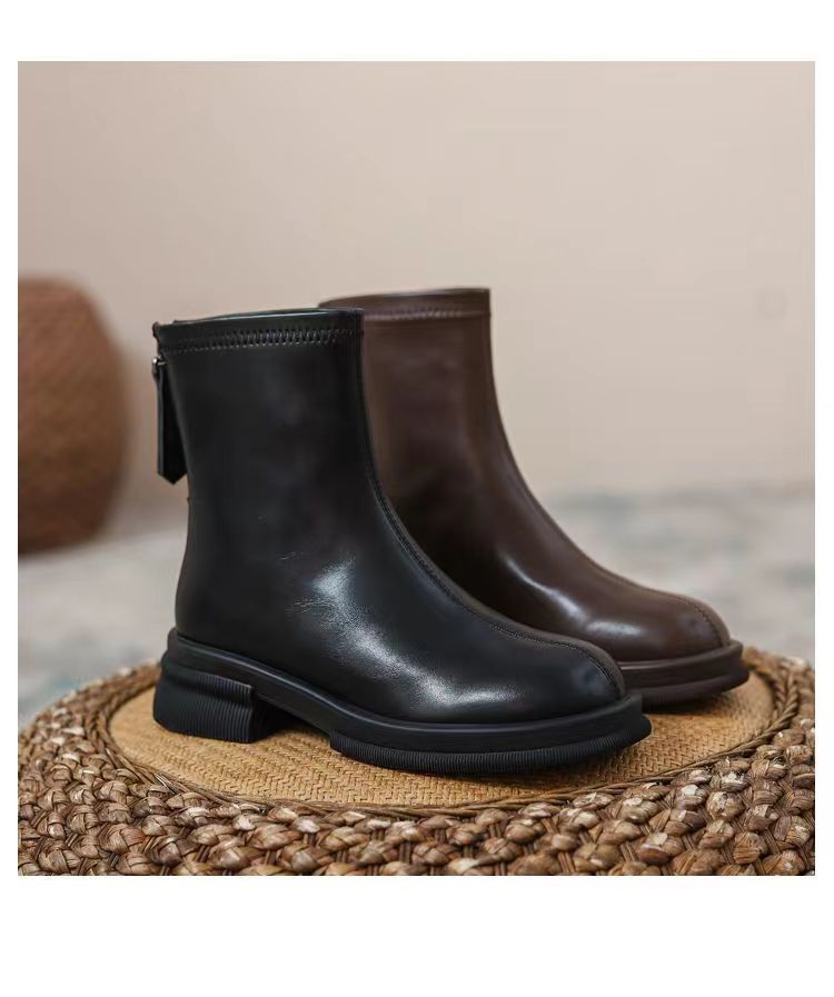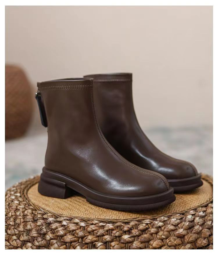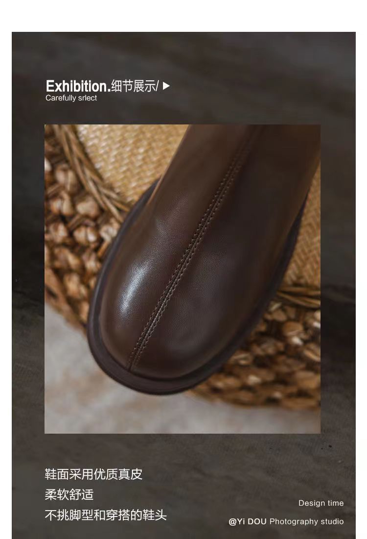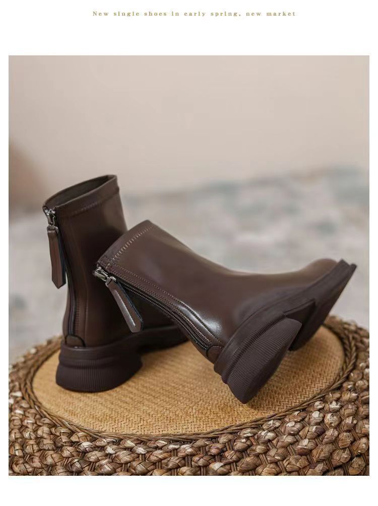 폭발 마틴 부츠 여자 가을 겨울 2024 새로운 두꺼운 다크 브라운 얇은 부츠 첼시 부츠 스트레치 부츠 증가스토어 가기