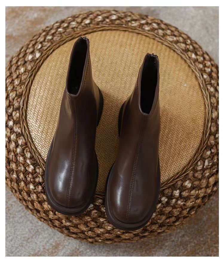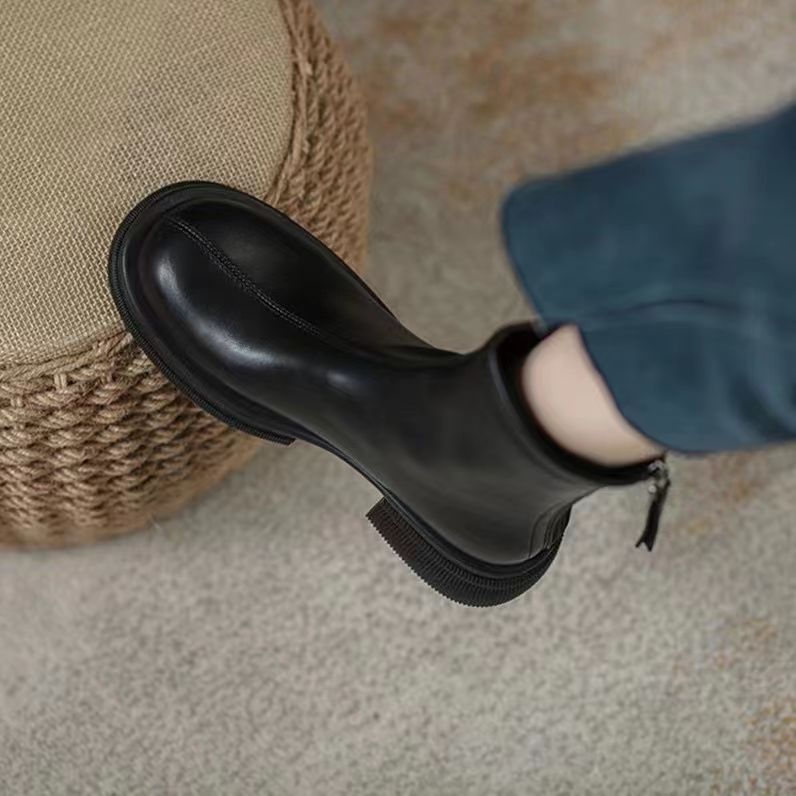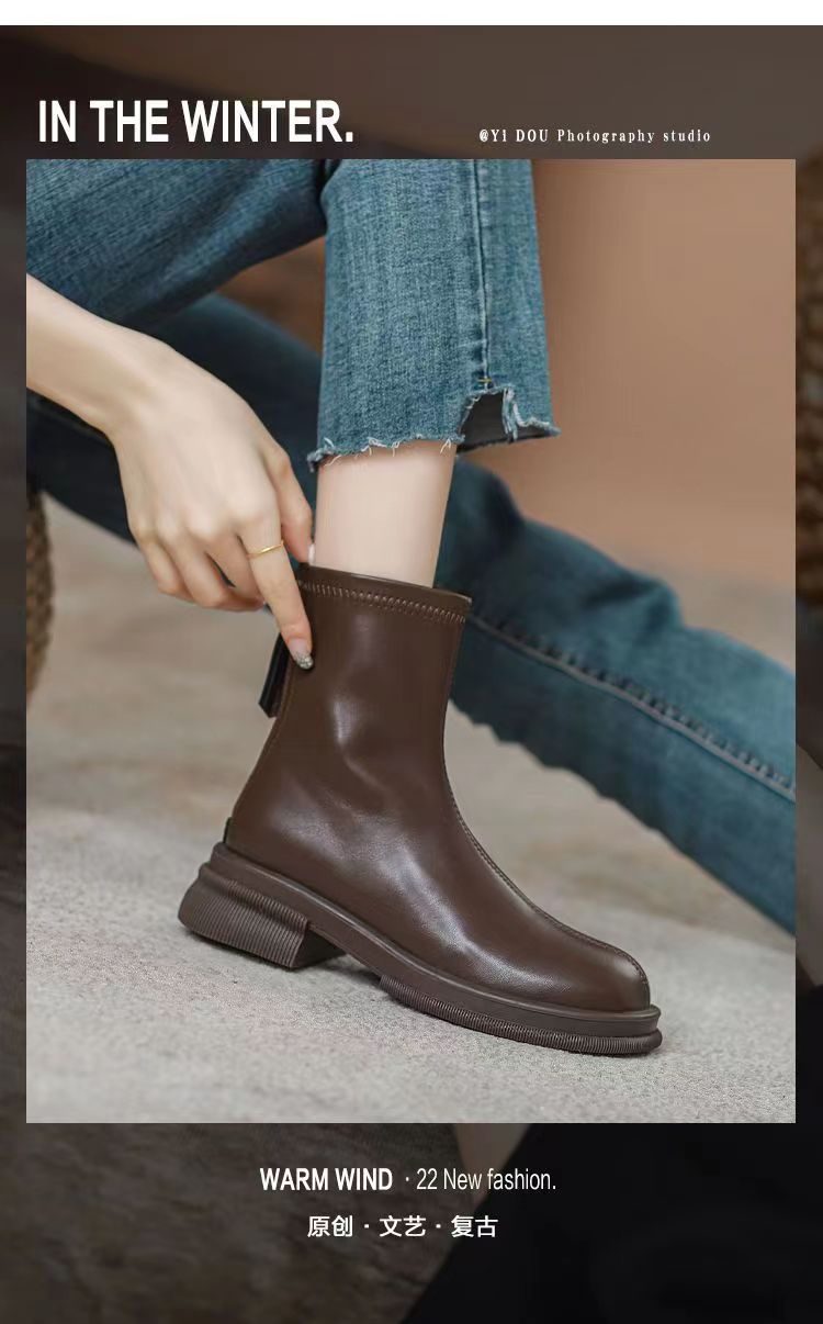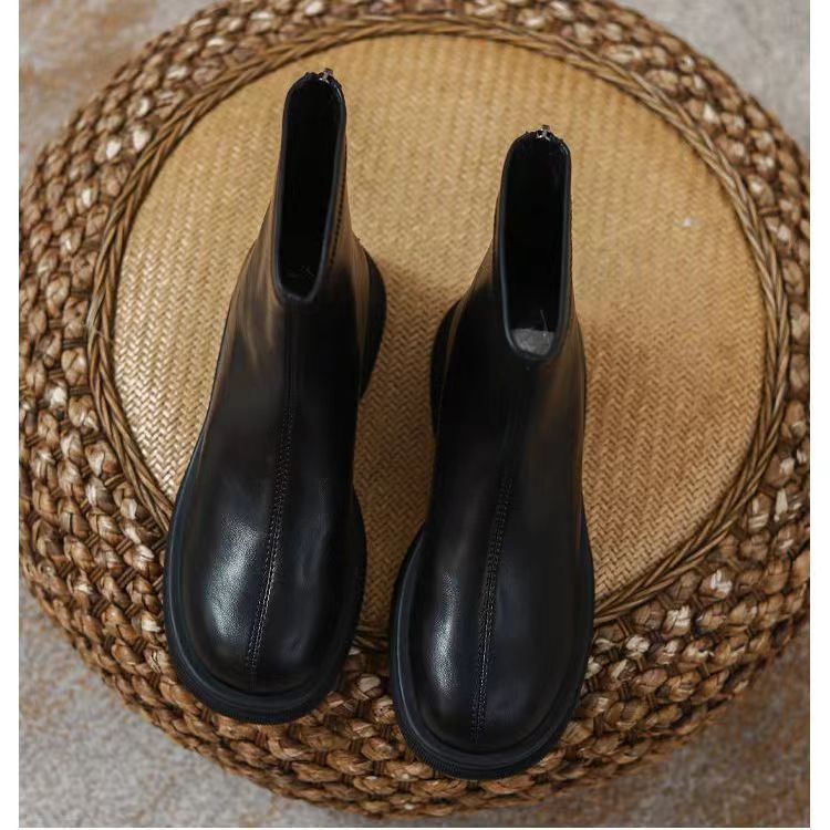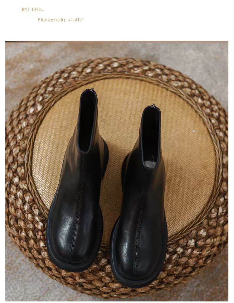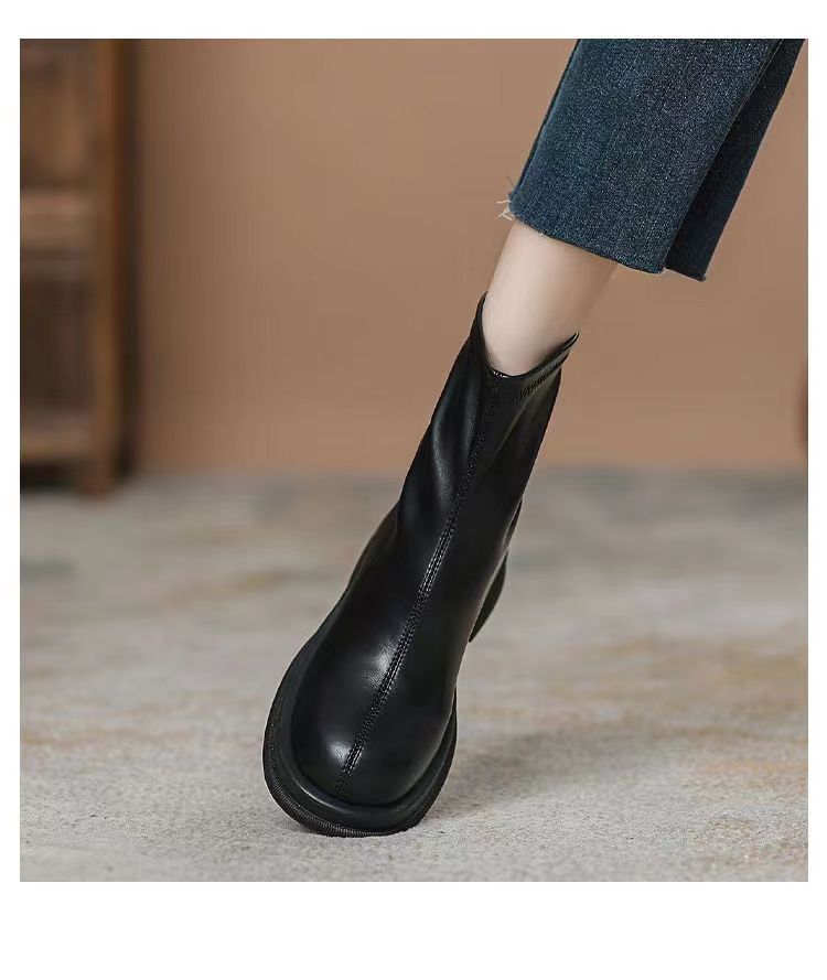폭발 마틴 부츠 여자 가을 겨울 2024 새로운 두꺼운 다크 브라운 얇은 부츠 첼시 부츠 스트레치 부츠 증가스토어 가기