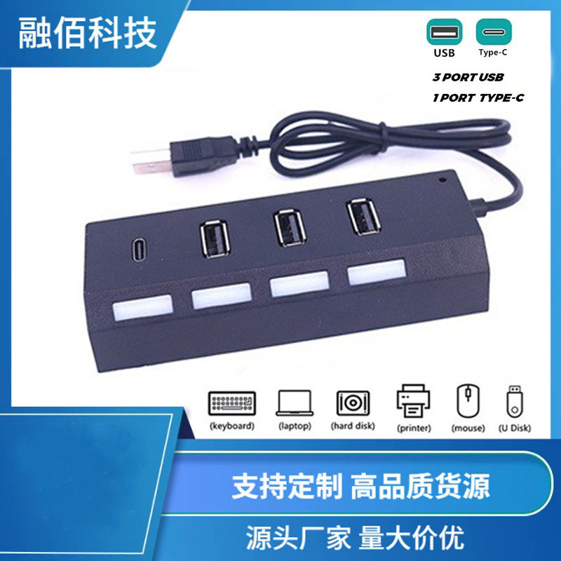 4포트 USB 허브, 1-4개 독립 스위치 분배기, 플러그인형 USBC 분배기 Typec스토어 가기