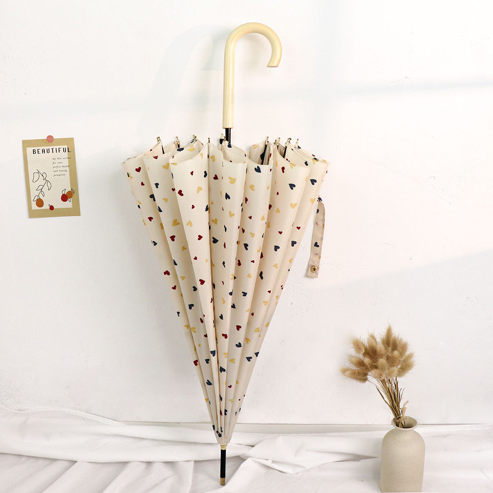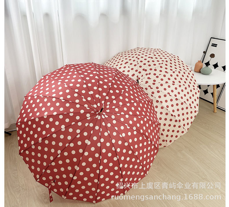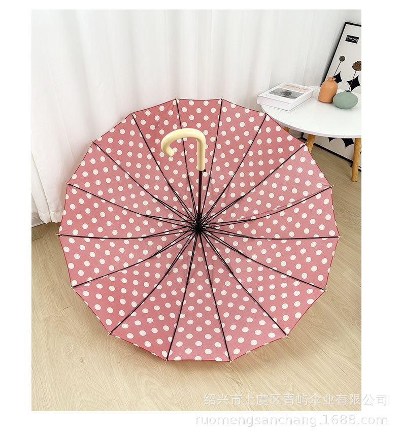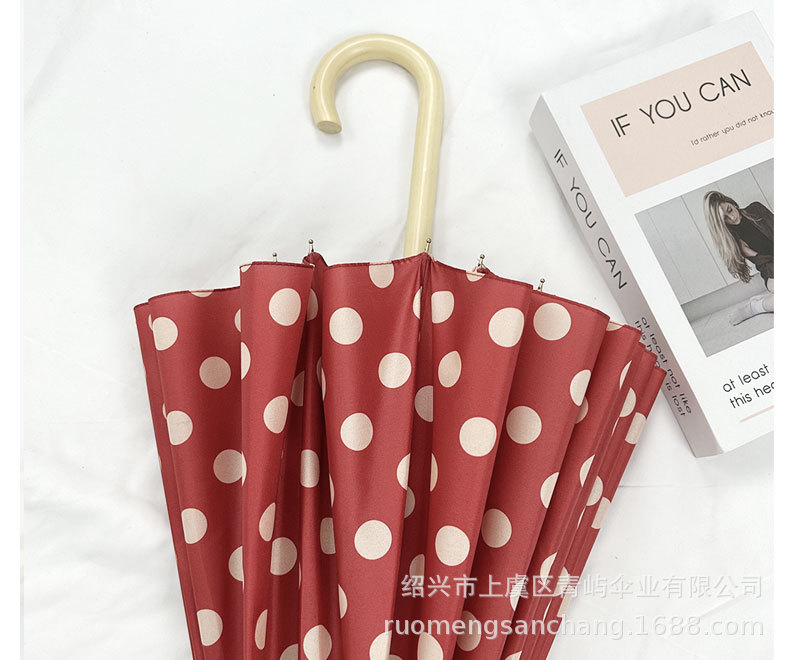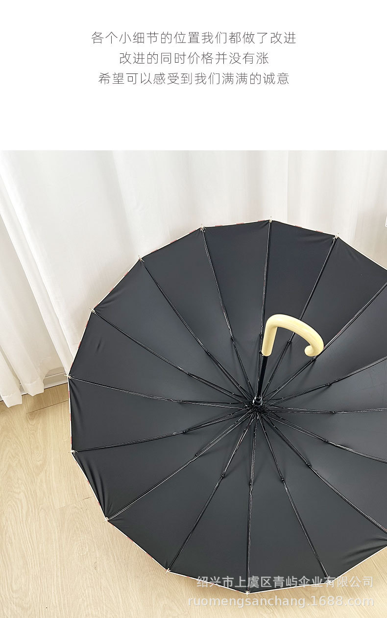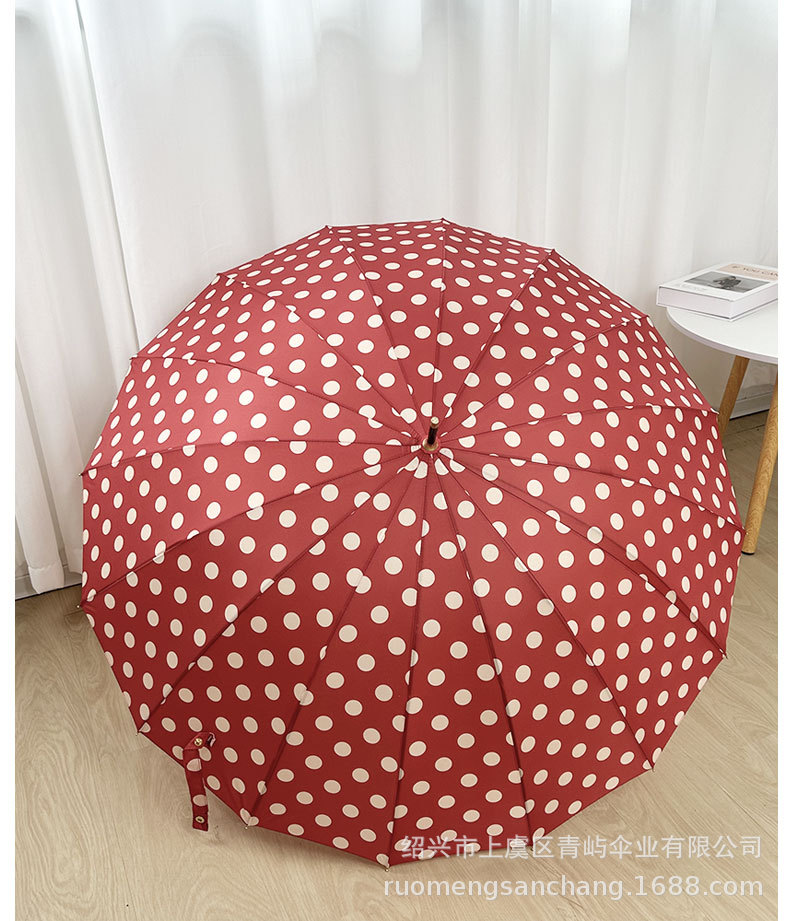 16-뼈 강화 방풍 긴 손잡이 우산 항구 바람, 비와 비 이중 사용 양산 버건디 원형 웨이브 포인트 후크 핸들 스트레이트 로드 우산스토어 가기