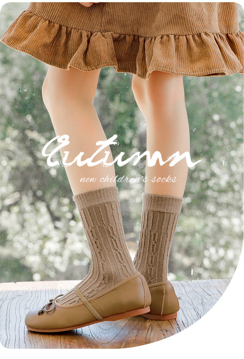 2024 년 소녀 양말 봄과 가을 복고풍 단색 튜브 양말 일반 트위스트 어린이 양말 가을과 겨울 면화 양말 도매스토어 가기
