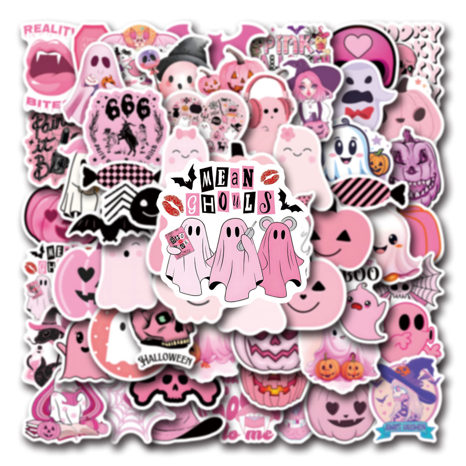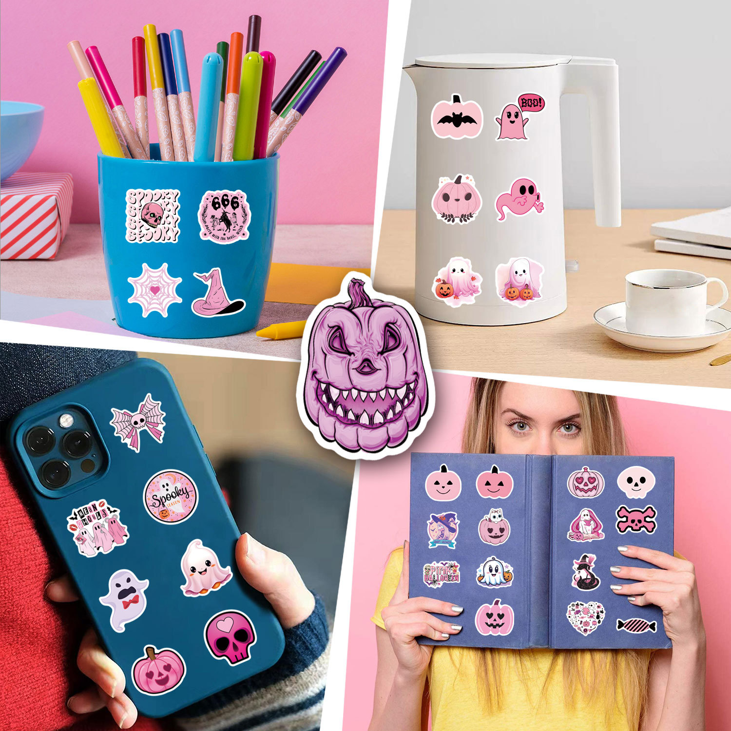 60 새로운 핑크 할로윈 낙서 스티커 장식 수하물 휴대 전화 스케이트 보드 스티커 제조 업체 도매스토어 가기