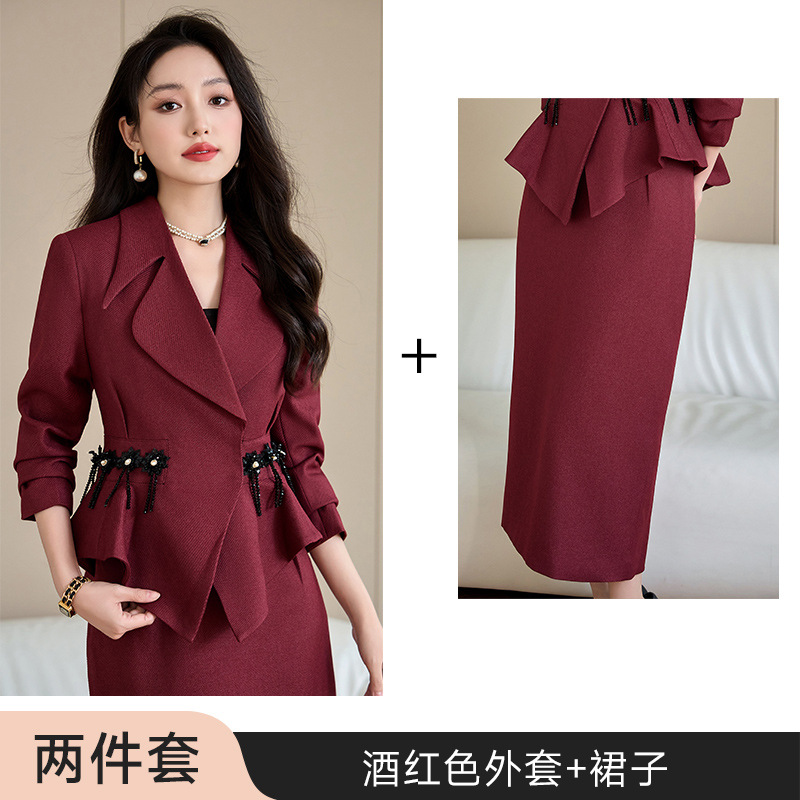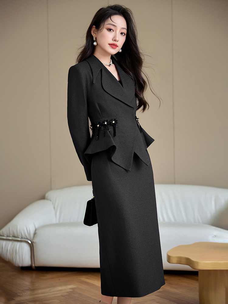 9938 국경 공급 2024 가을과 겨울 새로운 세트 슬림 슬림 세트 불규칙한 바닥 밑단 패션 여성 의류