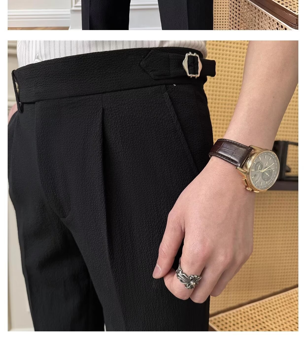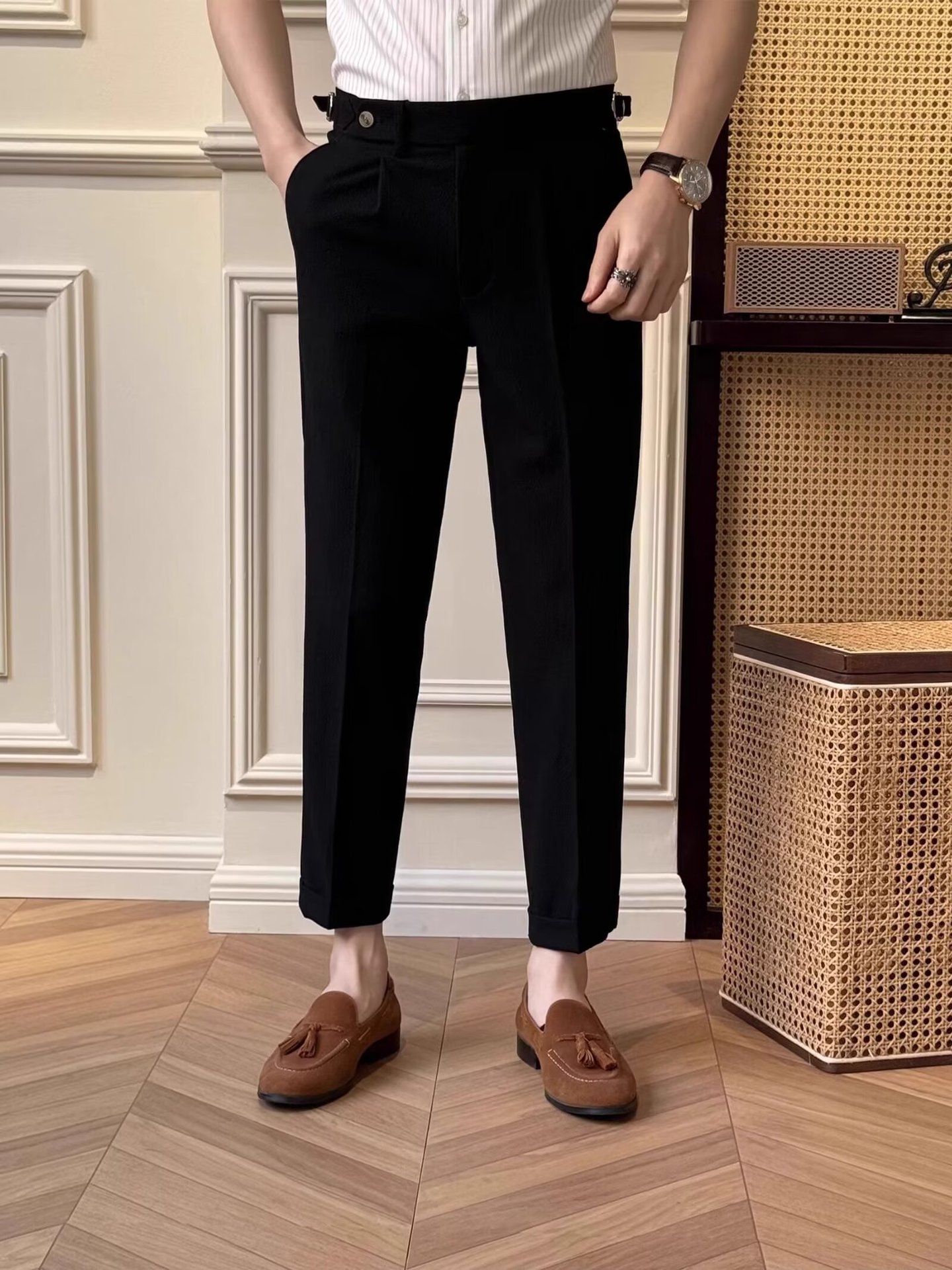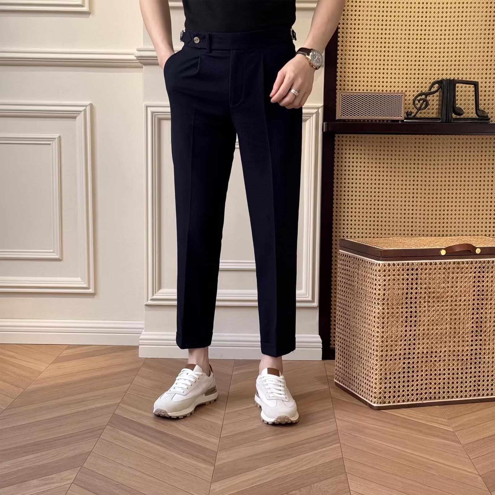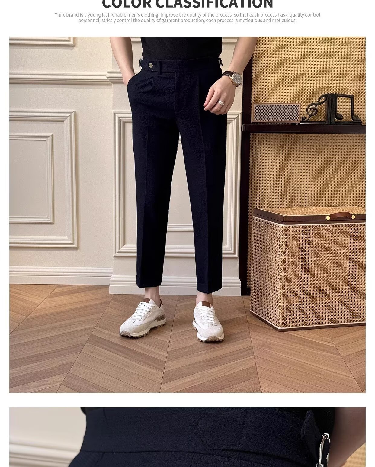 여름 고급 남성 세트 바지 2024 새로운 슬림 핏 자른 바지 패션 올 매치 캐주얼 바지 트렌디 비즈니스 바지