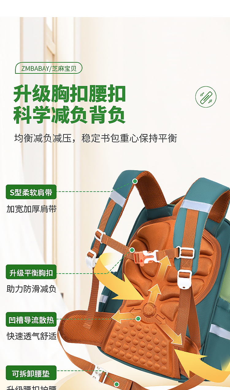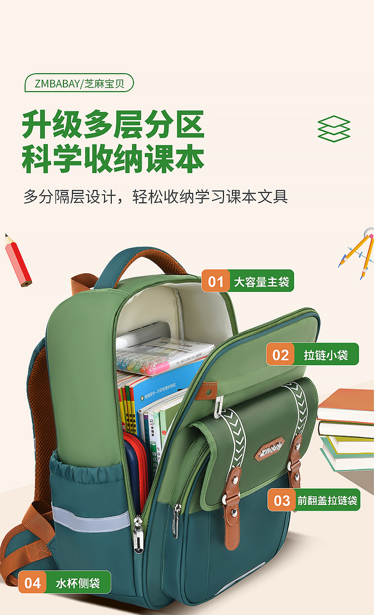 Sesame Baby 새로운 초등학교 가방 남성과 여성 1-3 학년 대용량 어린이 가방 경량 캐주얼 어깨스토어 가기