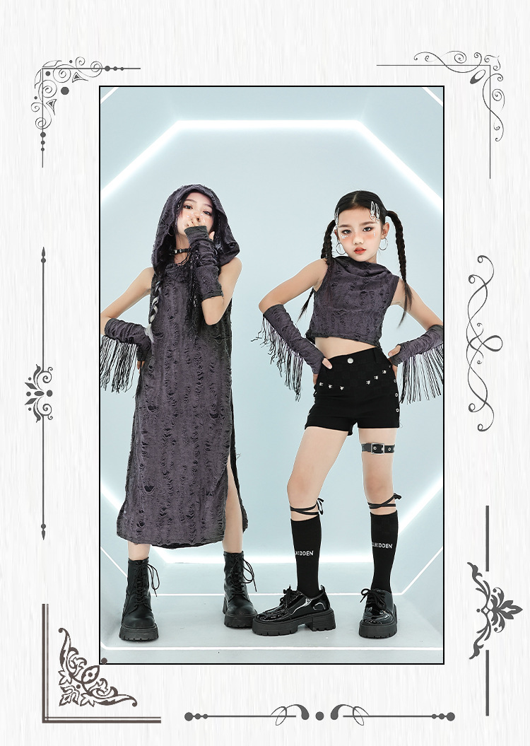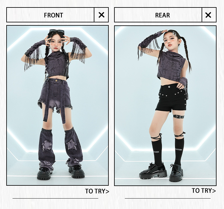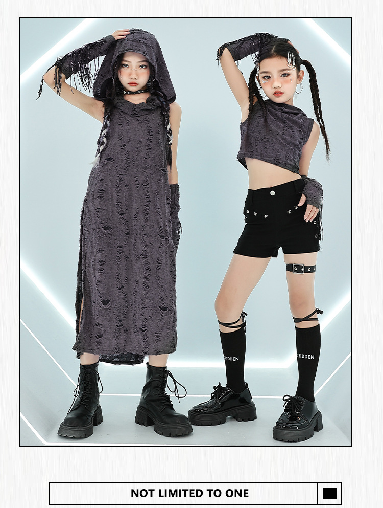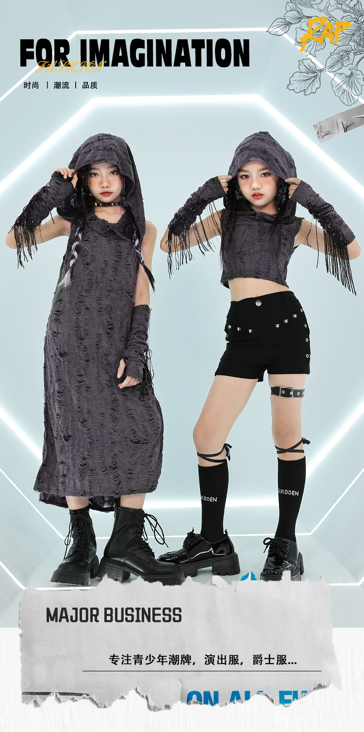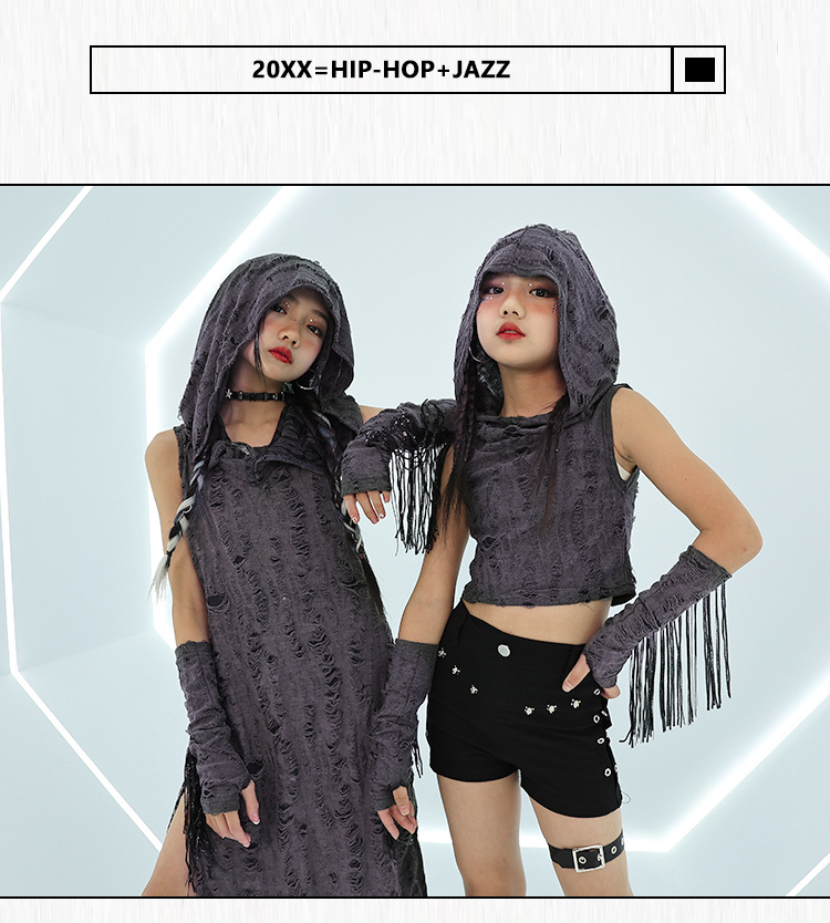 소녀 재즈 댄스 스트리트 댄스 공연 세트 2024 새로운 소녀 아기 여름 Dune 폐기물 지구 스타일 긴 원피스 재즈 패션쇼스토어 가기