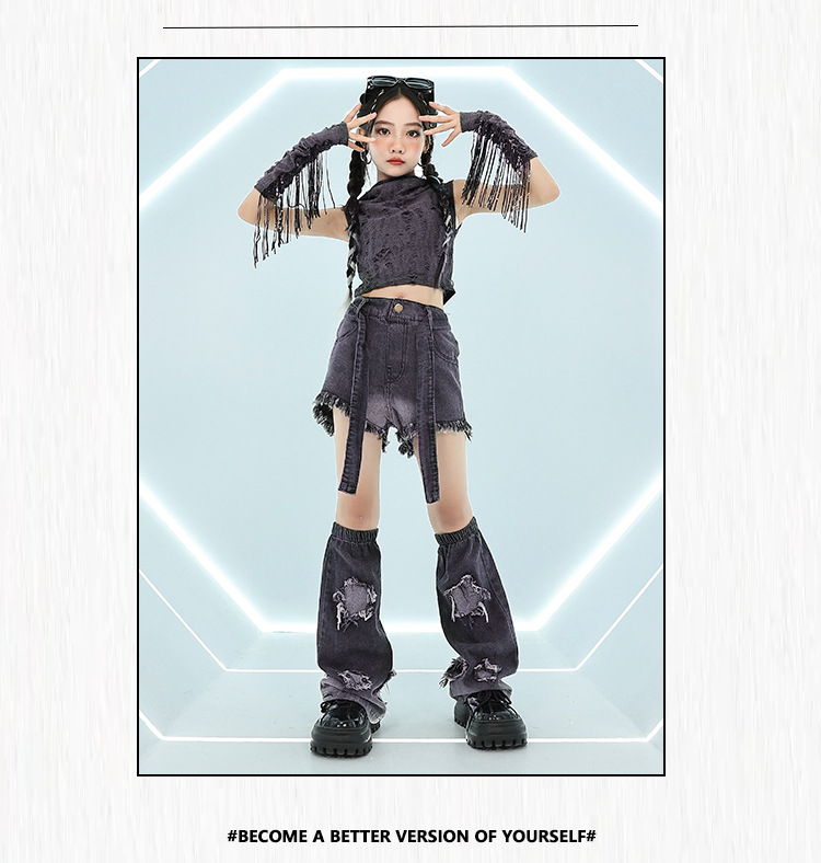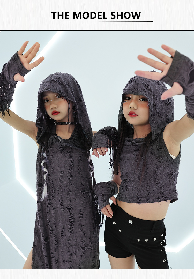 소녀 재즈 댄스 스트리트 댄스 공연 세트 2024 새로운 소녀 아기 여름 Dune 폐기물 지구 스타일 긴 원피스 재즈 패션쇼