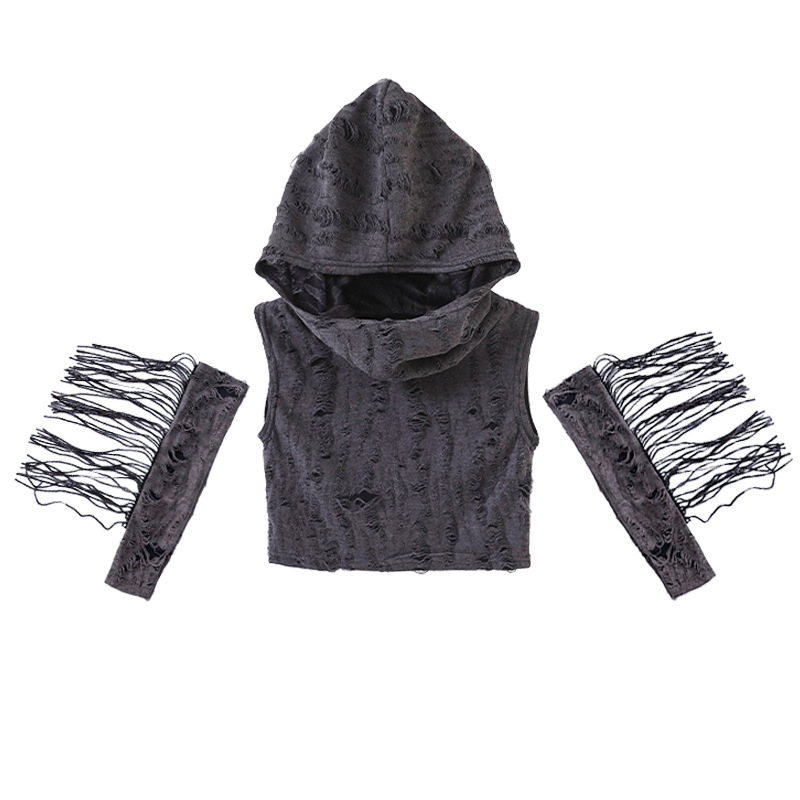 • 원피스 A552 짧은 다크 그레이 폐기물 후드 탑 D01 술 소매